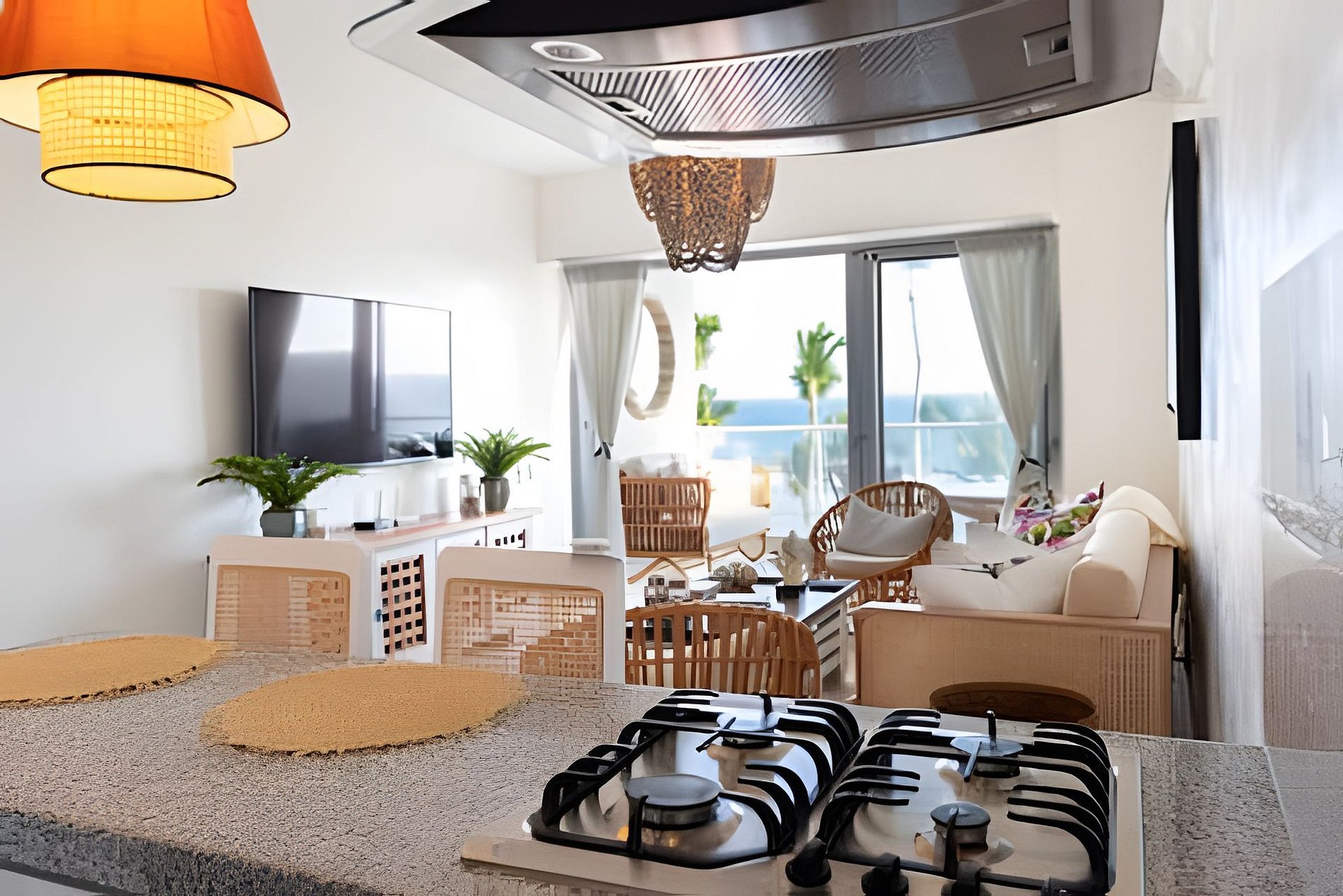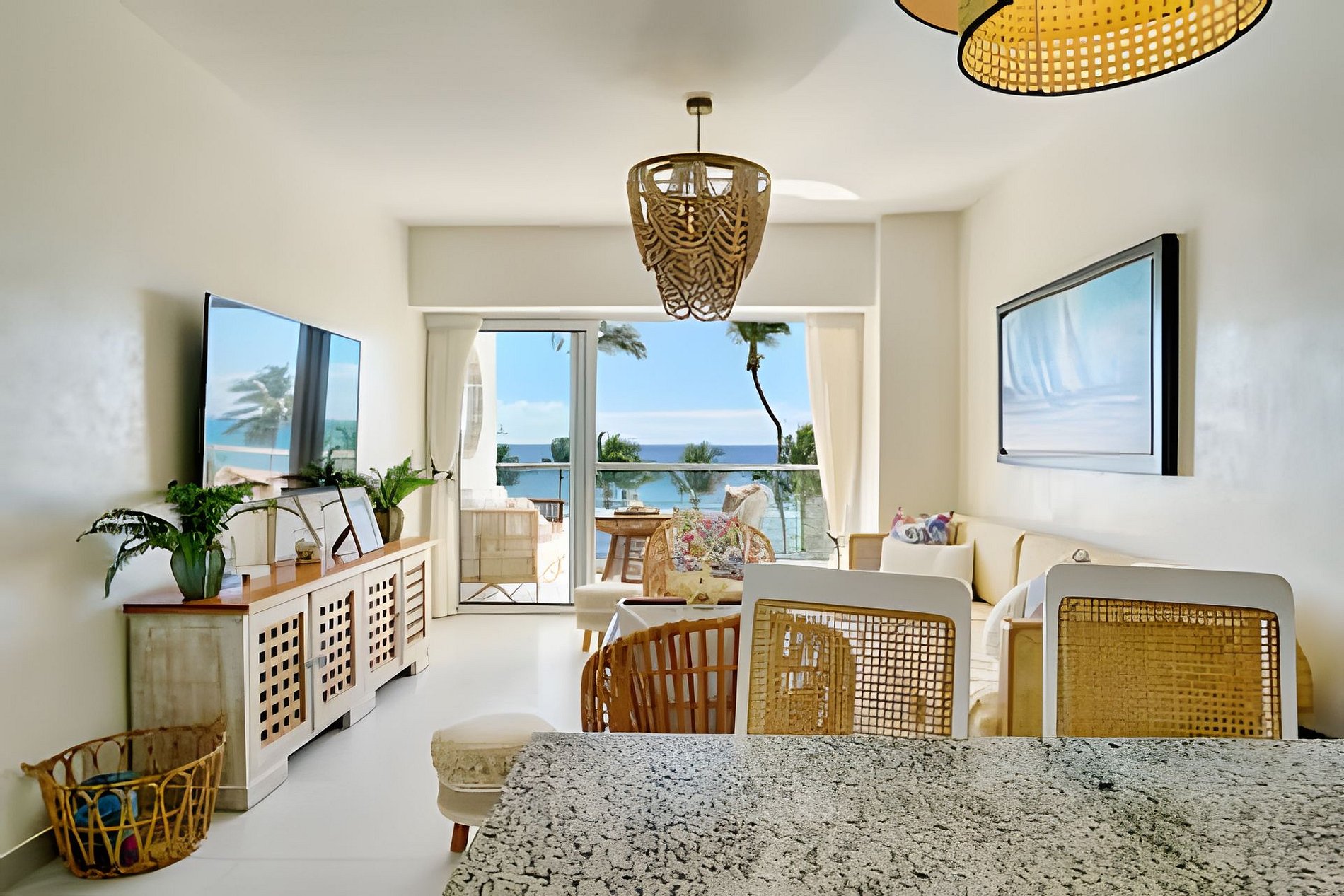to enjoy the vegetation and the sway of the waves of the Caribbean Sea, see the sand and live a totally relaxing experience in front of the beach, this apartment exquisitely decorated in a rustic chic style gives you all the comfort of enjoying with friends or family in an open plan where the social areas are perfectly integrated that you can even prepare your exquisite dishes while looking at the sea and sharing with your guests.