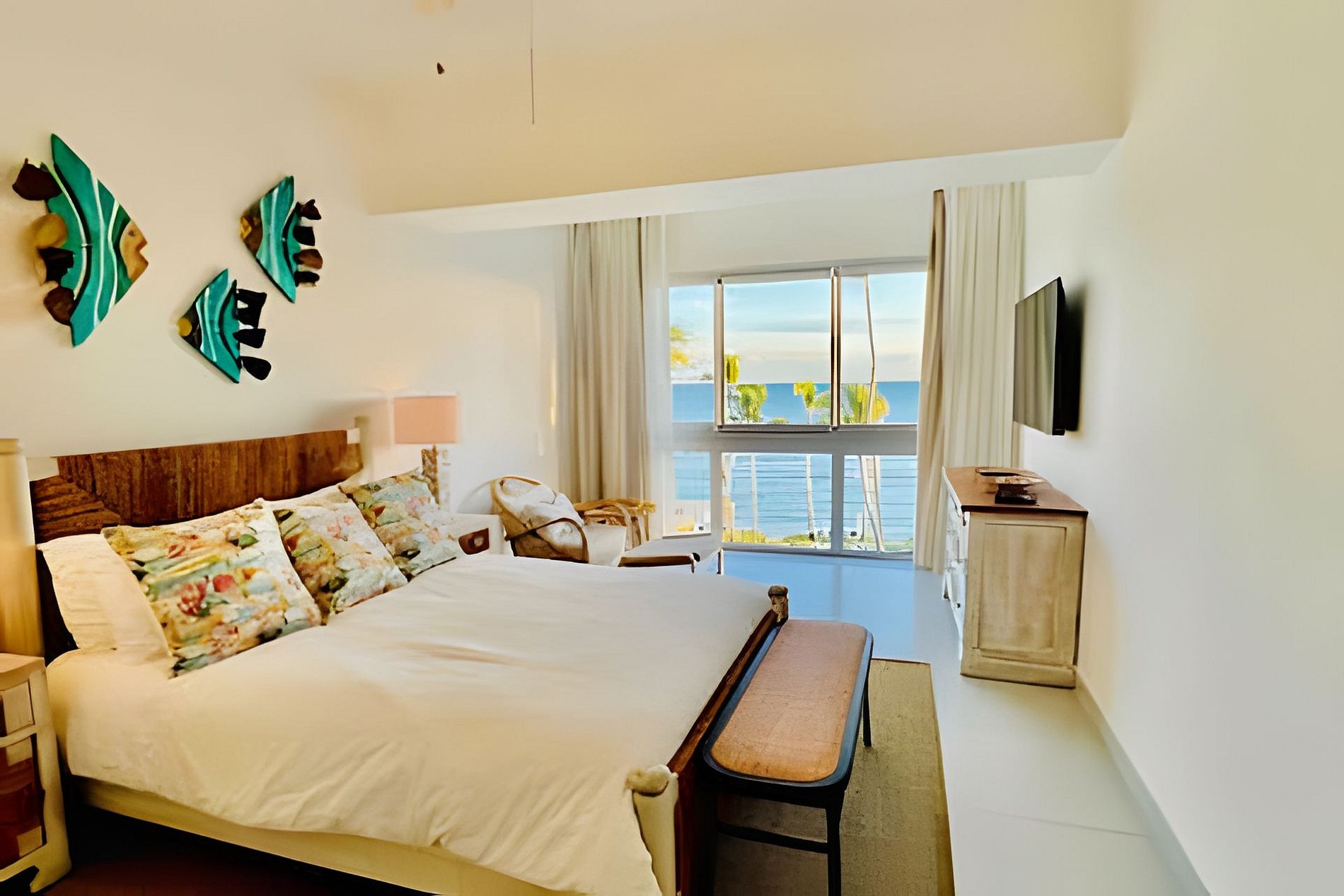 Environments full of natural light, decorated and equipped to make your stay cozy but above all very comfortable, each bedroom with very comfortable beds, air conditioning and TV. Immediately you open the entrance door you have a stunning view of the sea, tall coconut trees in a tropical environment that conveys a lot of peace and invites you to start your vacation as you deserve, relaxed with everything you may need during your stay. The large balcony so you can enjoy the warm Caribbean breeze and the most beautiful sunsets full of colors while you share a dinner with family and/or friends.