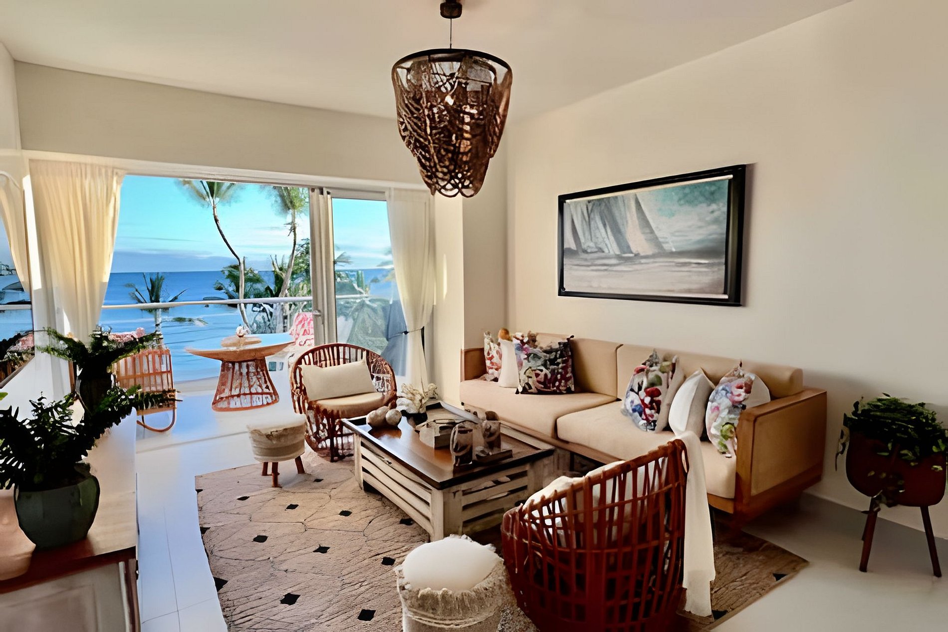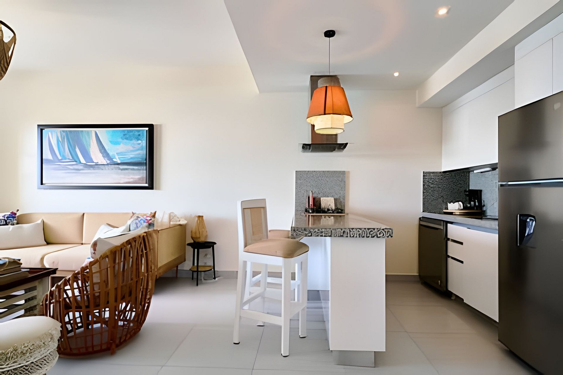 to enjoy the vegetation and the sway of the waves of the Caribbean Sea, see the sand and live a totally relaxing experience in front of the beach, this apartment exquisitely decorated in a rustic chic style gives you all the comfort of enjoying with friends or family in an open plan where the social areas are perfectly integrated that you can even prepare your exquisite dishes while looking at the sea and sharing with your guests.