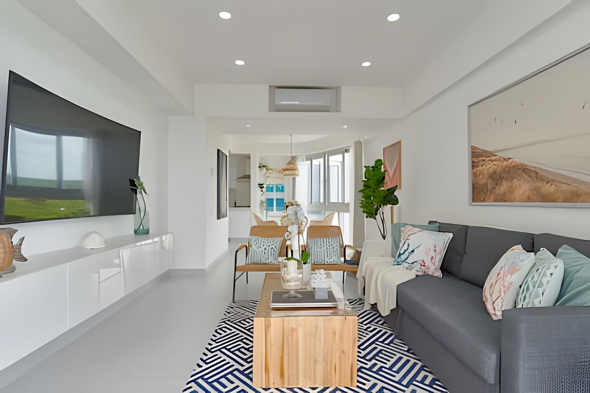 The apartment is spacious, full of light, decorated according to the beach atmosphere and relaxed but sophisticated at the same time, full of details for the comfort and enjoyment of each guest. The special corner is the dining room with sea view, integrated with all the areas so that sharing is much easier even when doing different activities. **This incredible place, as described, can be occupied by two adults + 2 children under 12 years old.**