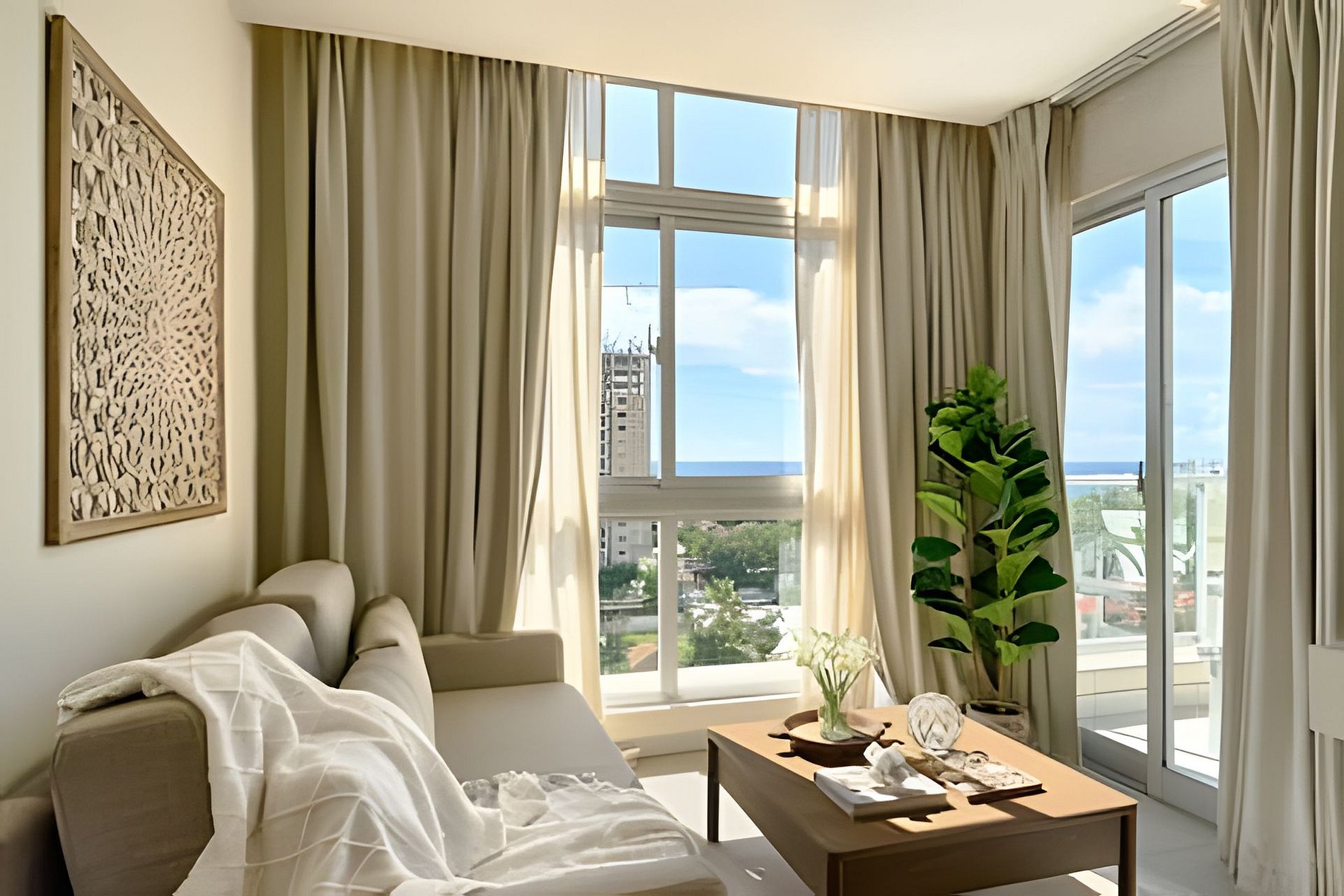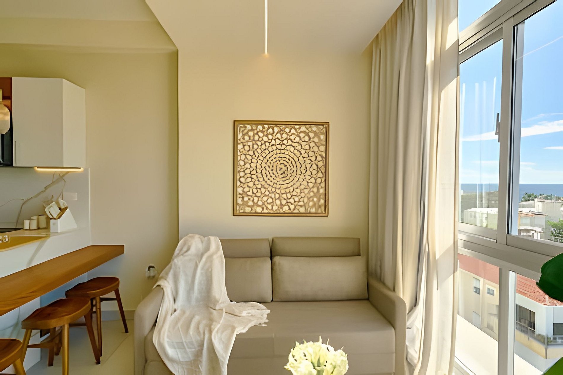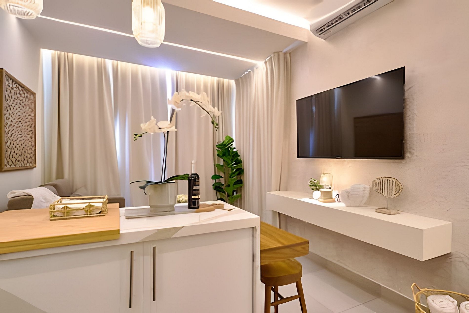 Thinking and taking care of every detail for the comfort of each space, this one-bedroom apartment, ideal for couples or groups of up to four people, with a sofa bed in the living room, fully equipped kitchen, TV and air conditioning in each room, with a large balcony to enjoy the spectacular view of the entire coastline of this magical beach town, dreamy sunsets, large windows that let in the natural light that bathes all the spaces of the apartment, your stay here will be completely unforgettable and relaxing. All you need after a day of beach and fun is a hot rain shower bath, very comfortable beds, a delicious dinner that you can easily prepare, order or walk to one of the many restaurants that are just a short walk away from you, and if you want some nightlife, there are also several bars very close.