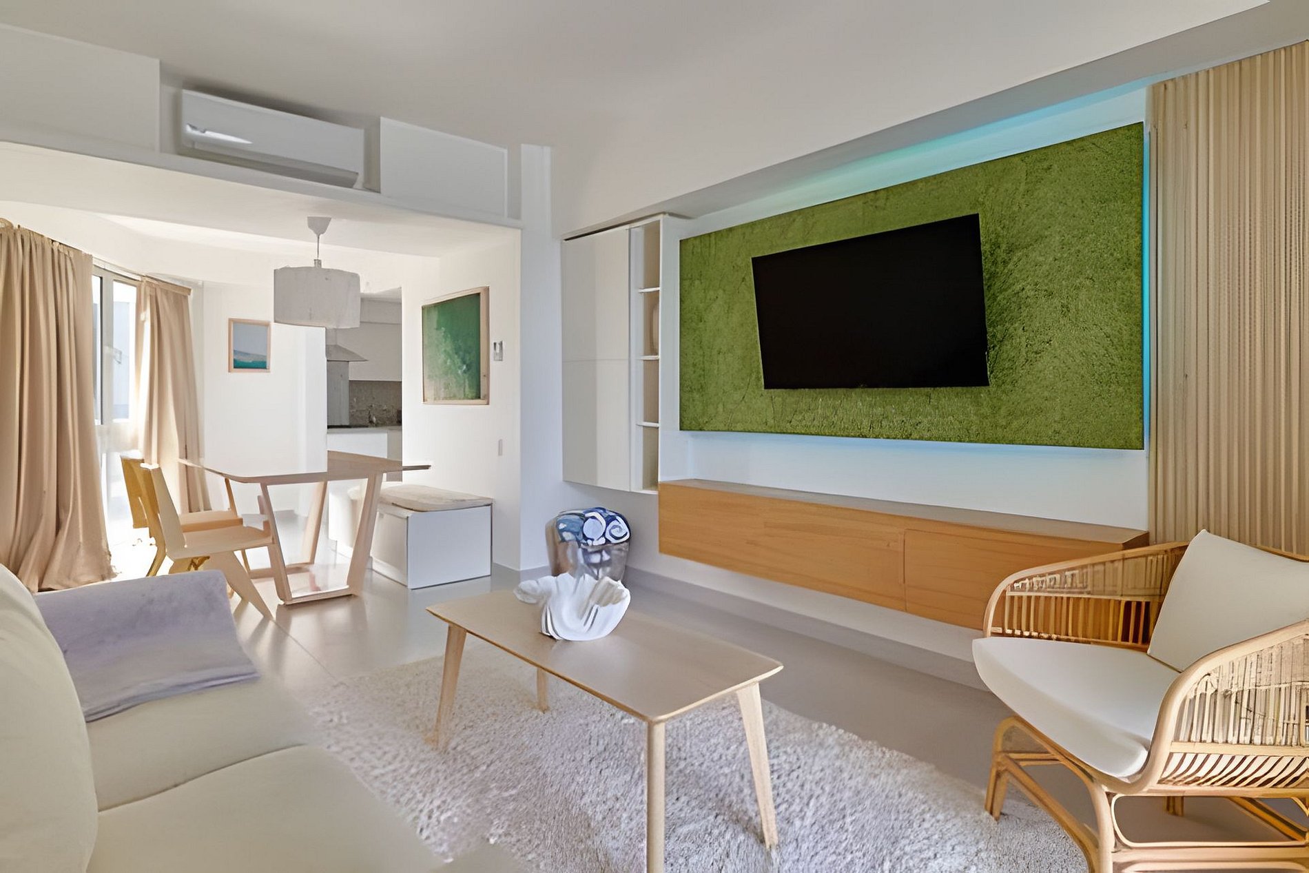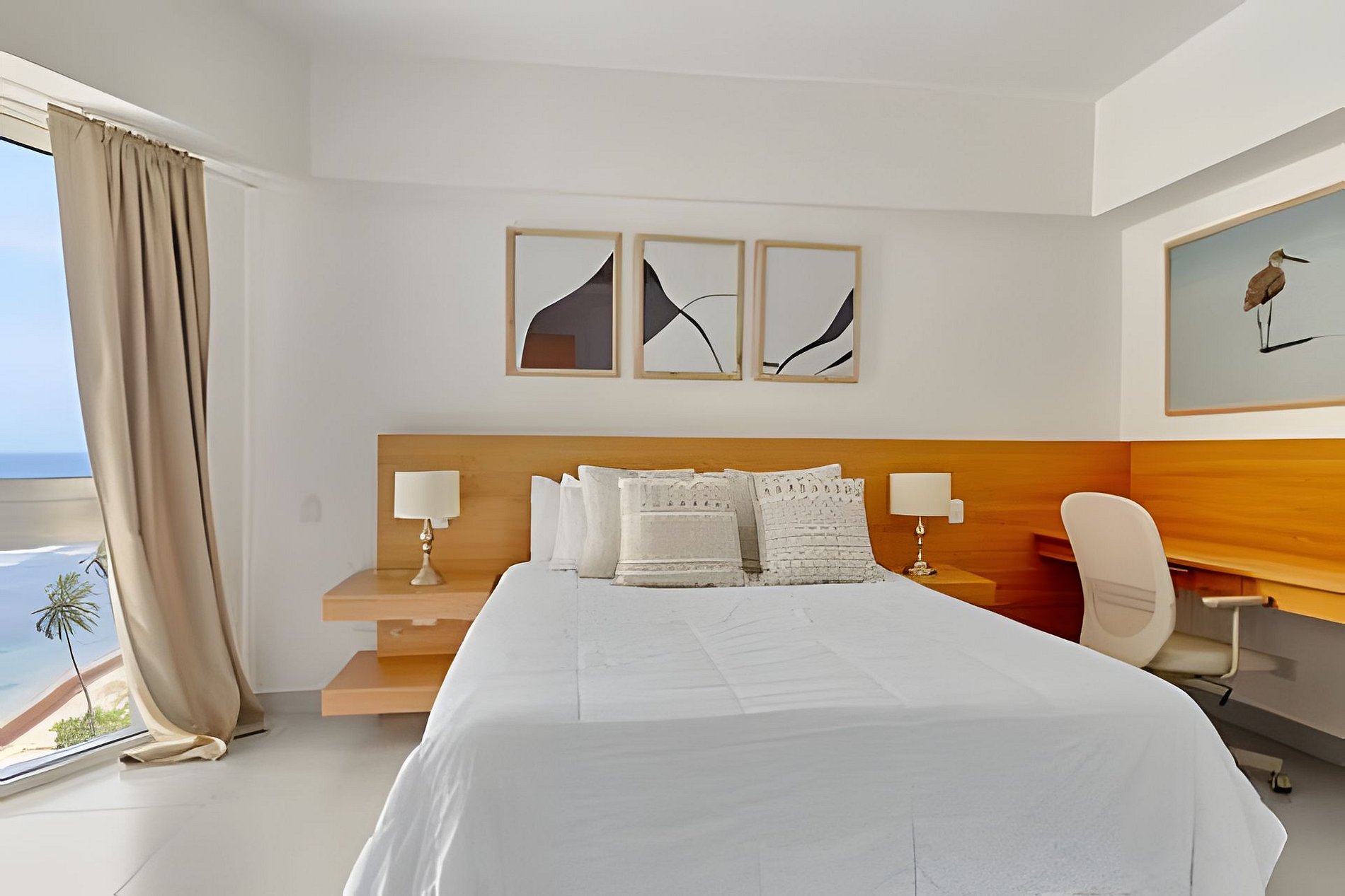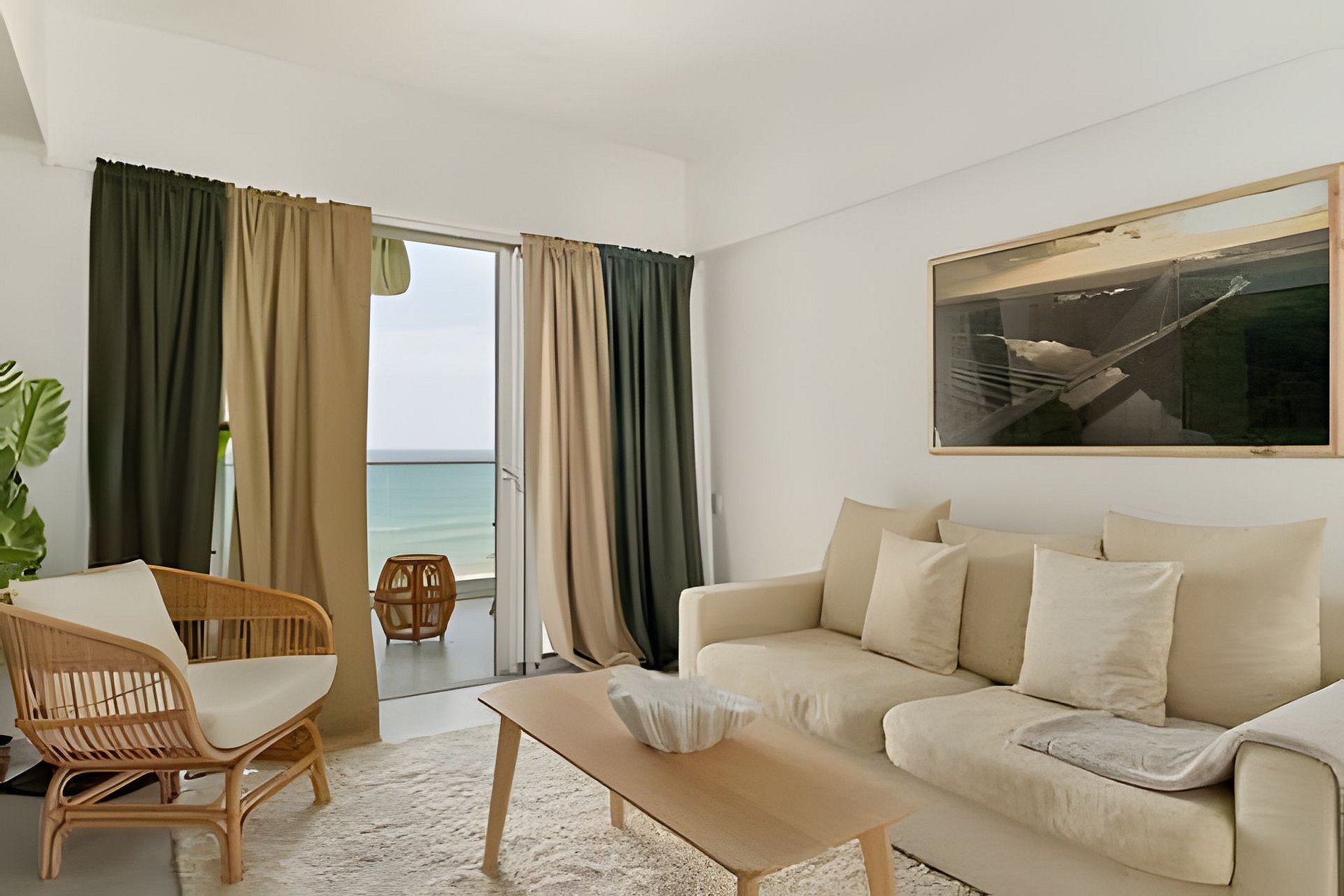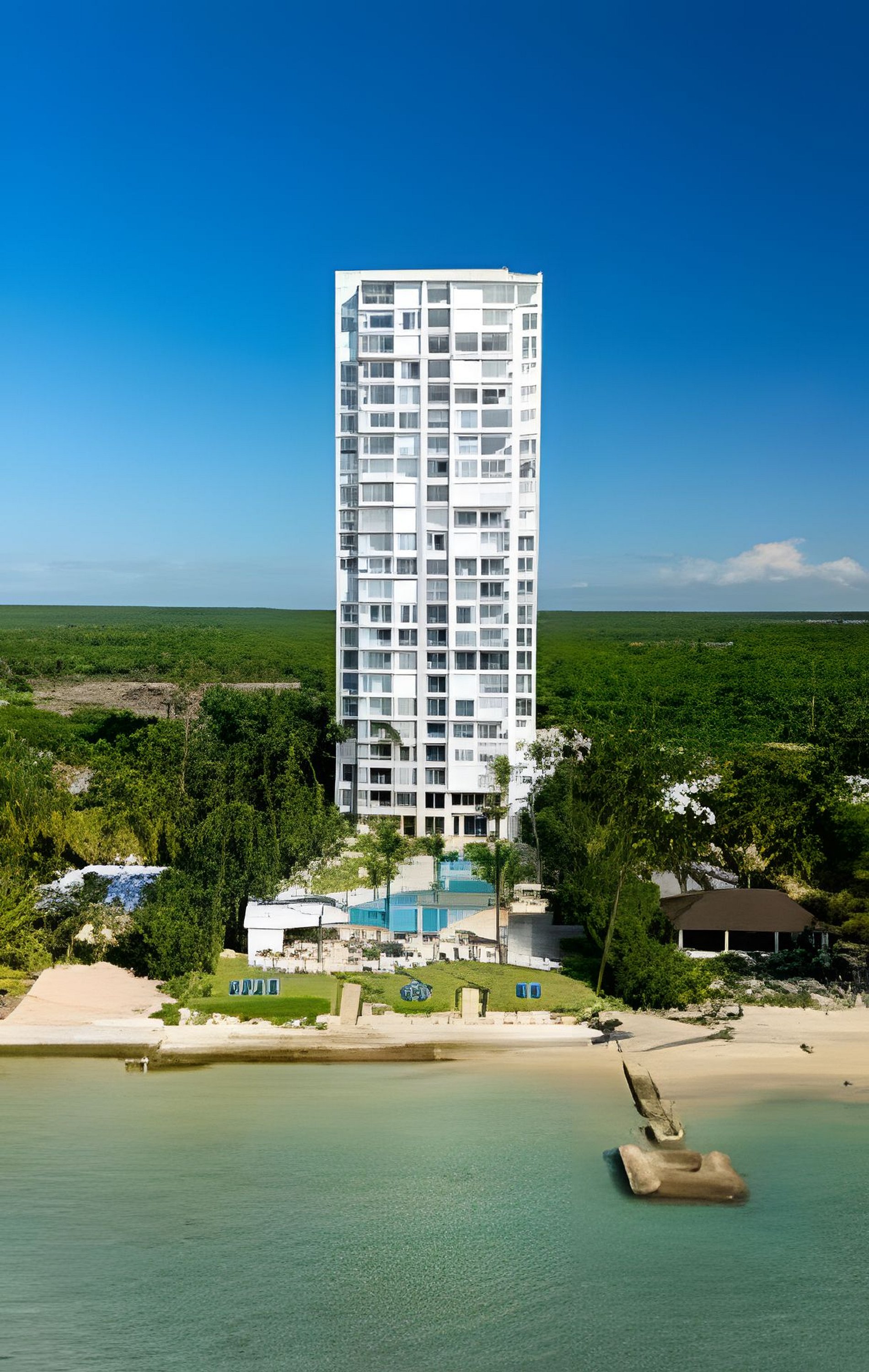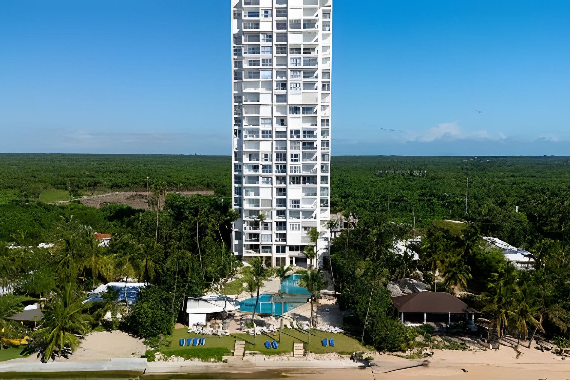 Do you love sunsets? This spacious apartment is the ideal place to contemplate them. From each of its spaces, through the large windows you can enjoy the most incredible views of the Caribbean Sea and its beautiful sunsets that are a spectacle every day. On the beachfront, and just 20 minutes from Las Americas airport, it is ideal for a quick escape from the routine and to disconnect during your vacation. Spacious and relaxing, this one-bedroom apartment located on level 10 of Torre Aquarella, with 180-degree panoramic views to the west, from all areas of the apartment, through its large windows that let in natural light bathing all spaces, and creating that feeling of luminosity and peace in the environment, fresh, spacious and very comfortable for a dream vacation, was thought and designed with comfort in mind, with everything you need at your fingertips. An open-plan layout that connects each space and each activity, you can cook delicious dishes contemplating the sea, while sharing with your companion who may be waiting for you on the couch watching TV or on the balcony enjoying a drink. The best thing is that the building is on the beachfront, close to Las Americas International Airport and just one hour from Santo Domingo. With amenities, if your plan is to relax, here you have them all. If your plan is a getaway to rest and relax, here you have everything you need: the beach at your feet, a majestic infinity pool with a swimming lane available from 8:00 am, an equipped gym, a private sauna (you must reserve it at the front desk), massage rooms, a multipurpose court, and also an excellent, friendly staff, taking care of you 24 hours a day. With easy access to delivery services from different restaurants and grocery stores, the main road, taxi service, and a corner to take public transportation. If you are one of those who likes to walk along the beach, there are two restaurants nearby, one of which is better than the other: Soya Azul and Aquarium, walking east. Our guests have full confidence that they will always be taken care of, in addition to the excellent staff of the building, it is a matter of a message that they send us and in seconds everything will be resolved, please do not hesitate. If there is something that makes this place special, besides its amenities, services and architecture, it is its excellent location that allows it to have an almost private beach front. Being at the end of Juan Dolio, the beach is very uncrowded by people outside the building.