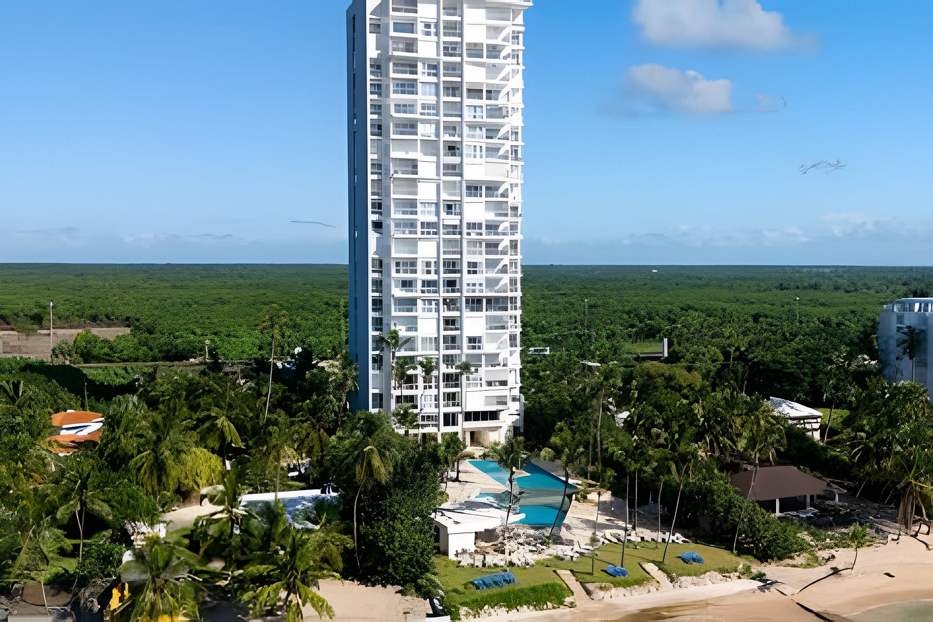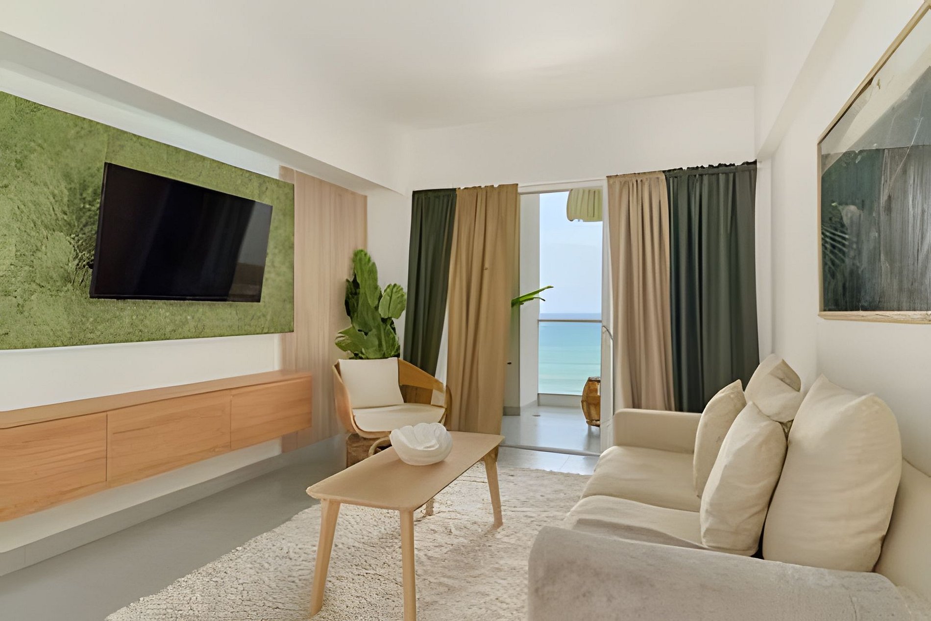 Do you love sunsets? This spacious apartment is the ideal place to contemplate them. From each of its spaces, through the large windows you can enjoy the most incredible views of the Caribbean Sea and its beautiful sunsets that are a spectacle every day. On the beachfront, and just 20 minutes from Las Americas airport, it is ideal for a quick escape from the routine and to disconnect during your vacation. Spacious and relaxing, this one-bedroom apartment located on level 10 of Torre Aquarella, with 180-degree panoramic views to the west, from all areas of the apartment, through its large windows that let in natural light bathing all spaces, and creating that feeling of luminosity and peace in the environment, fresh, spacious and very comfortable for a dream vacation, was thought and designed with comfort in mind, with everything you need at your fingertips. An open-plan layout that connects each space and each activity, you can cook delicious dishes contemplating the sea, while sharing with your companion who may be waiting for you on the couch watching TV or on the balcony enjoying a drink. The best thing is that the building is on the beachfront, close to Las Americas International Airport and just one hour from Santo Domingo. With amenities, if your plan is to relax, here you have them all. If your plan is a getaway to rest and relax, here you have everything you need: the beach at your feet, a majestic infinity pool with a swimming lane available from 8:00 am, an equipped gym, a private sauna (you must reserve it at the front desk), massage rooms, a multipurpose court, and also an excellent, friendly staff, taking care of you 24 hours a day. With easy access to delivery services from different restaurants and grocery stores, the main road, taxi service, and a corner to take public transportation. If you are one of those who likes to walk along the beach, there are two restaurants nearby, one of which is better than the other: Soya Azul and Aquarium, walking east. Our guests have full confidence that they will always be taken care of, in addition to the excellent staff of the building, it is a matter of a message that they send us and in seconds everything will be resolved, please do not hesitate. If there is something that makes this place special, besides its amenities, services and architecture, it is its excellent location that allows it to have an almost private beach front. Being at the end of Juan Dolio, the beach is very uncrowded by people outside the building.