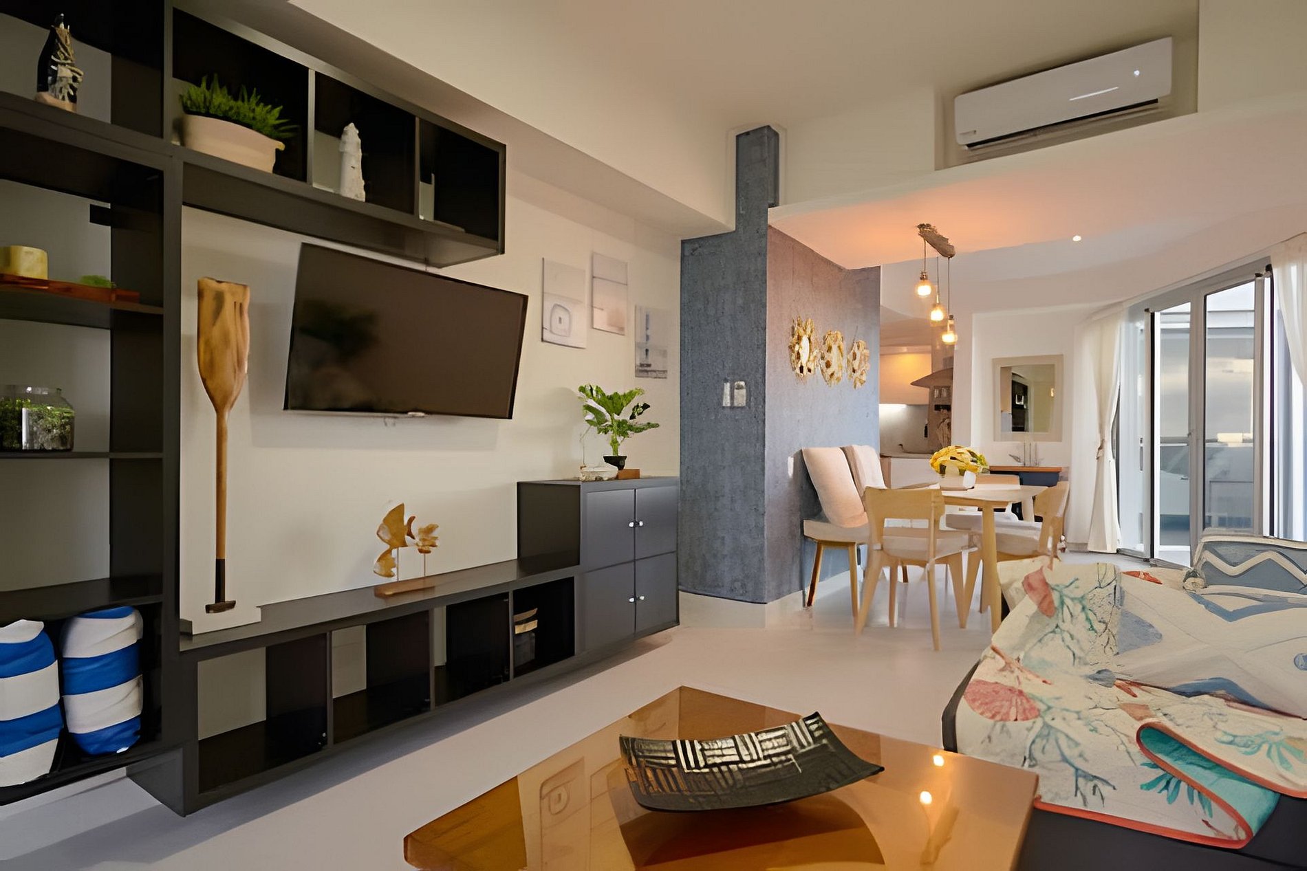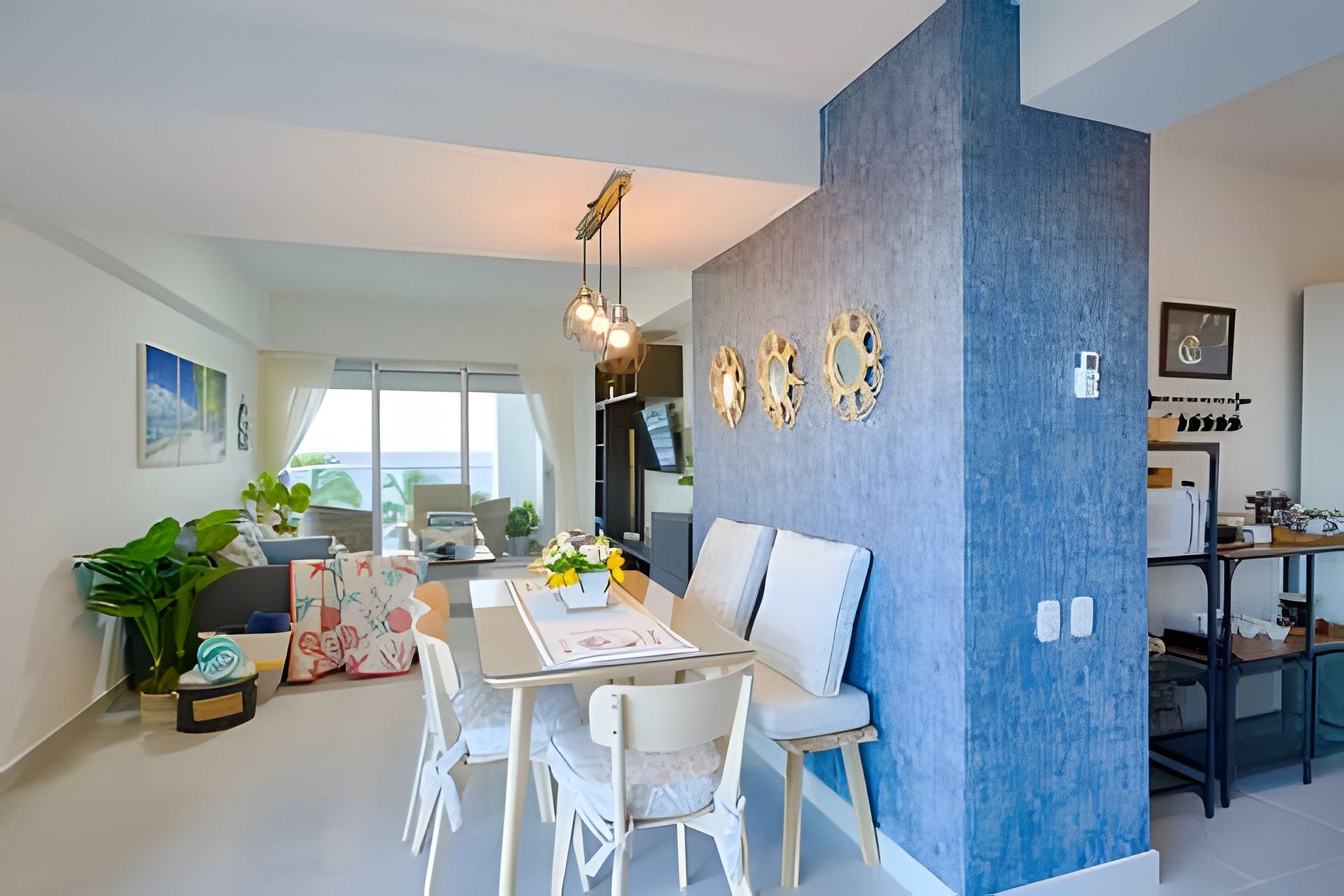 Disconnect from your worries, just 45 minutes from the chaos of the city of Santo Domingo, in front of a semi-private stretch of beach in Juan Dolio, you will find this apartment carefully decorated and equipped to make your stay comfortable and enjoyable. Enjoying the views of the Caribbean Sea from the first moment you open your eyes, and sitting down to be enchanted by the beautiful sunsets on its two large balconies is one of the privileges of staying here.