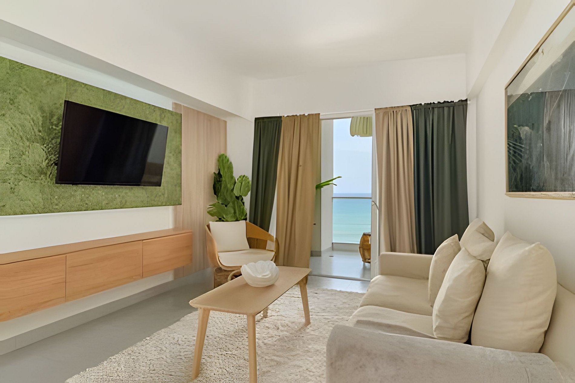 Todos los espacios del apartamento tienen vistas al Mar Caribe, ubicado en el nivel 10, al oeste de la Torre Aquarella puedes disfrutar de los espectaculares atardeceres de Juan Dolio. Decorado y equipado con todas las comodidades además de tener la playa a tus pies y una majestuosa piscina infinity para el disfrute durante toda tu estadía. **This incredible place, as described, can be occupied by two adults + 2 children under 12 years old.**