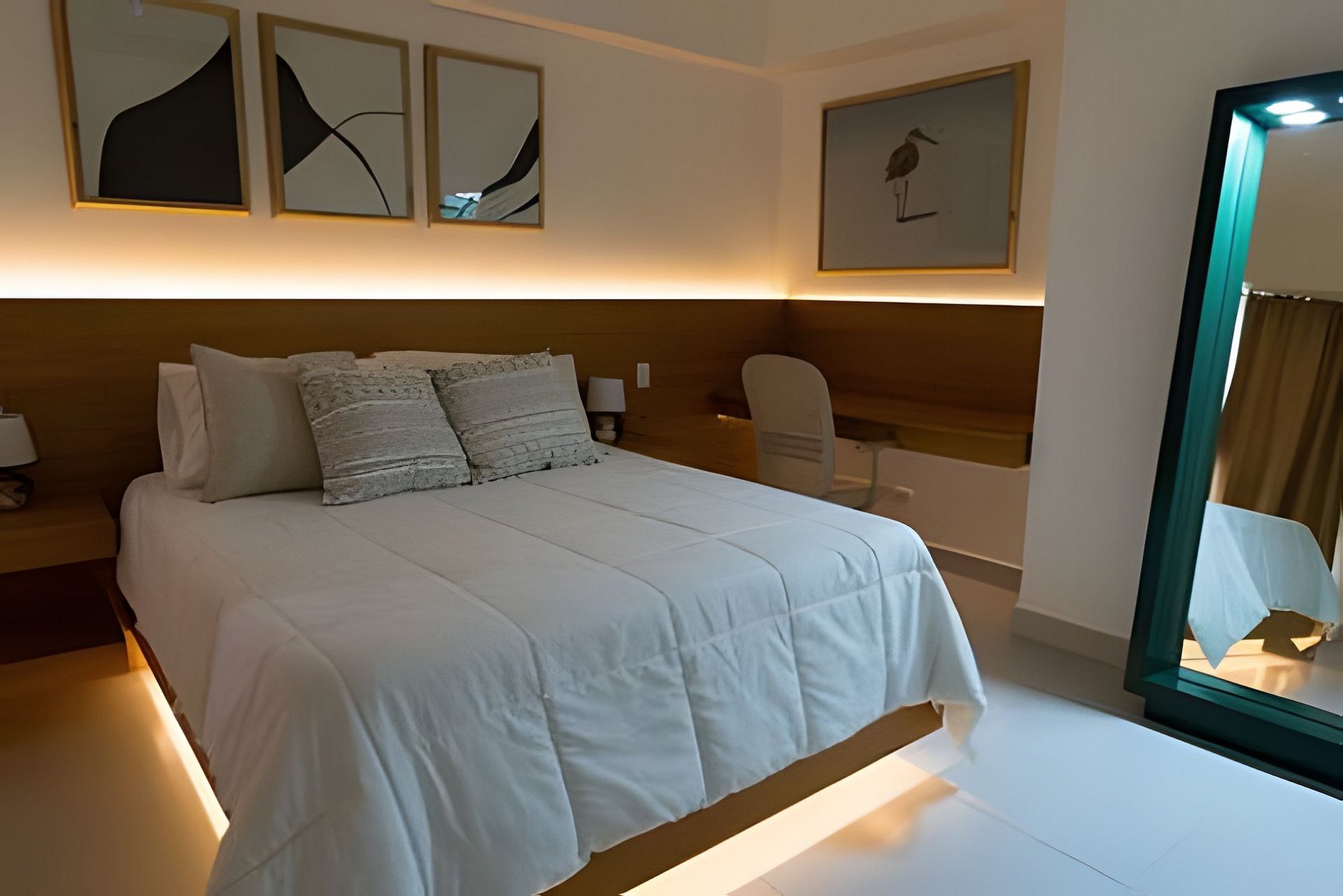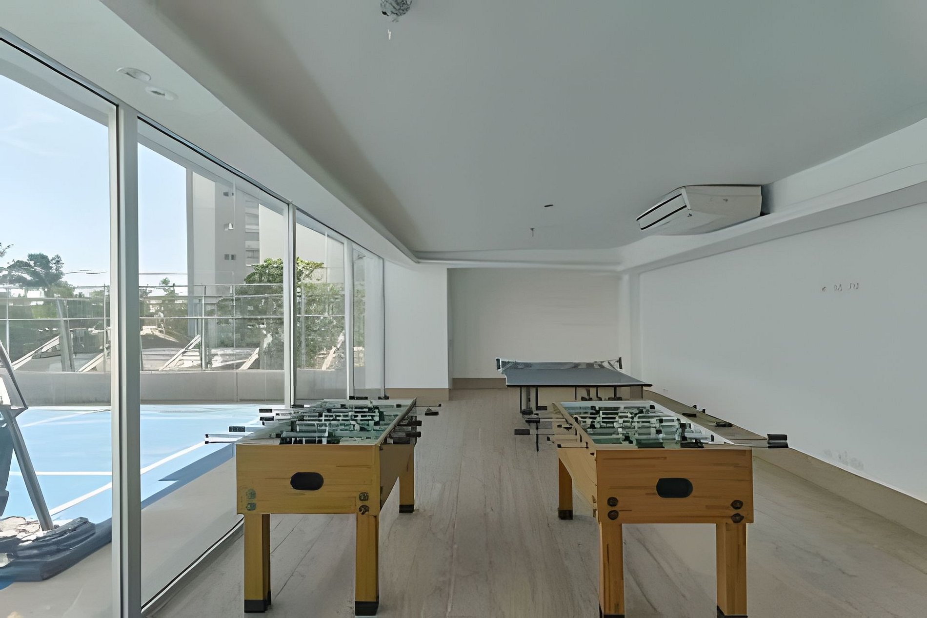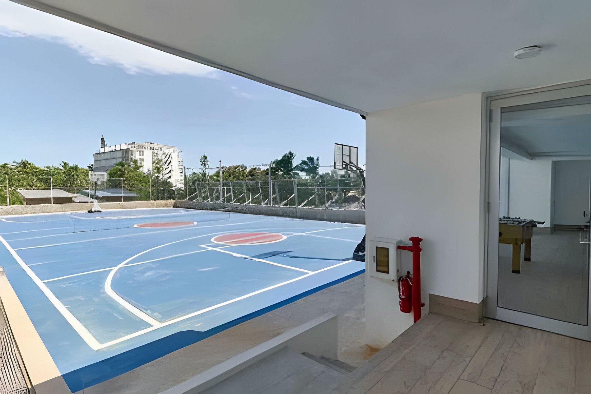El edificio cuenta con amenidades para el acceso de todos los huéspedes como: piscina infinity, una playa semiprivada, gimnasio, cancha multiuso, sala de juego, sauna y baño turco.