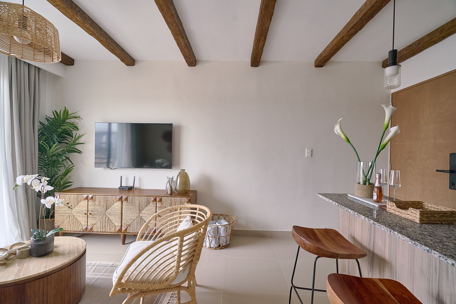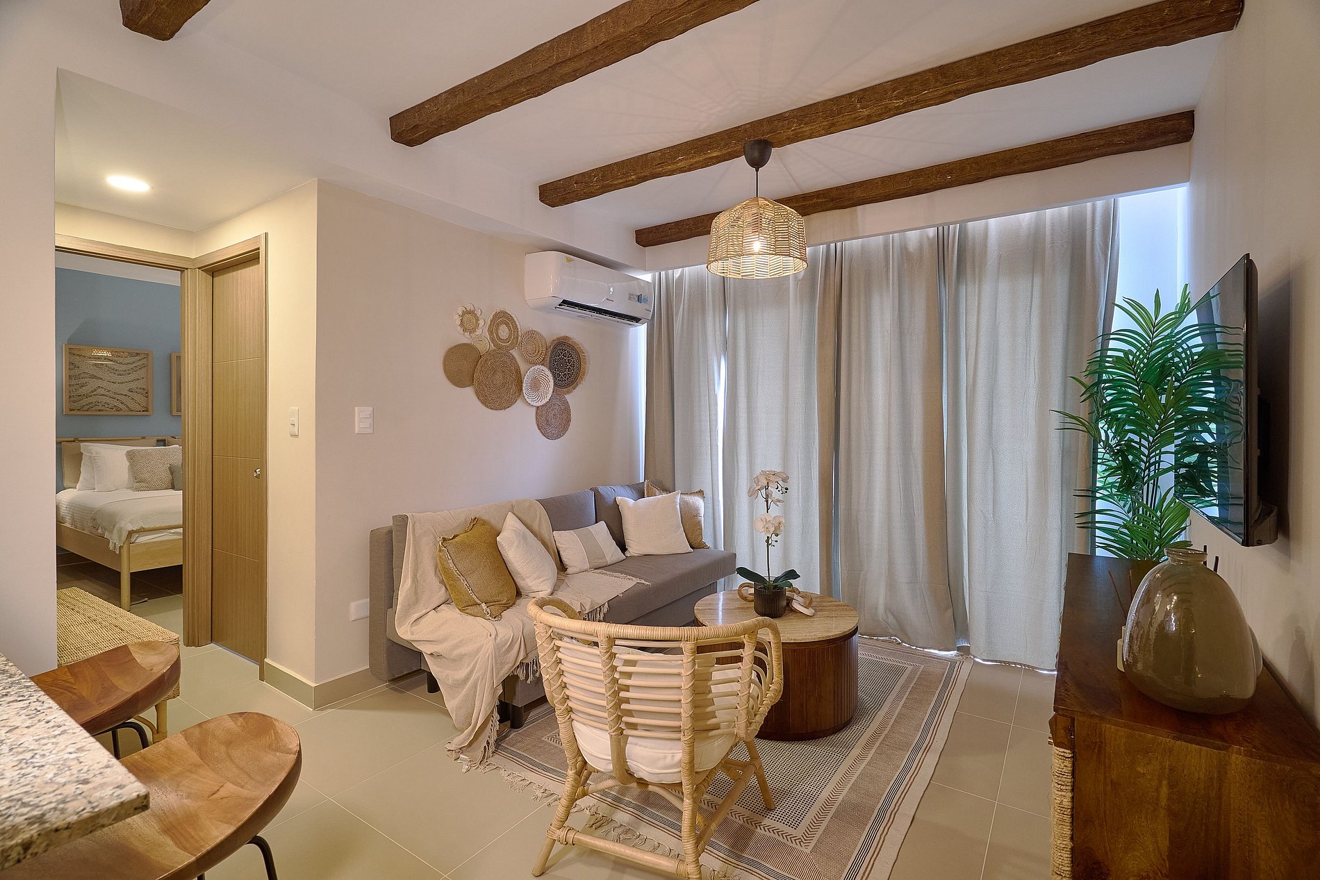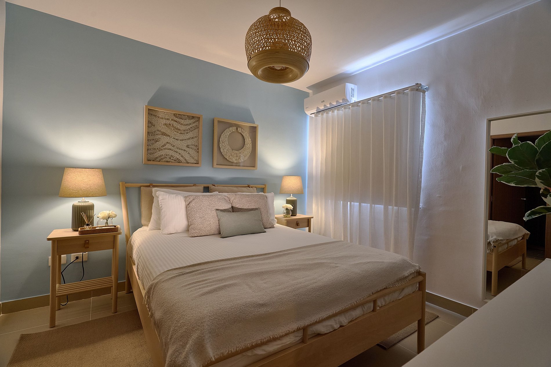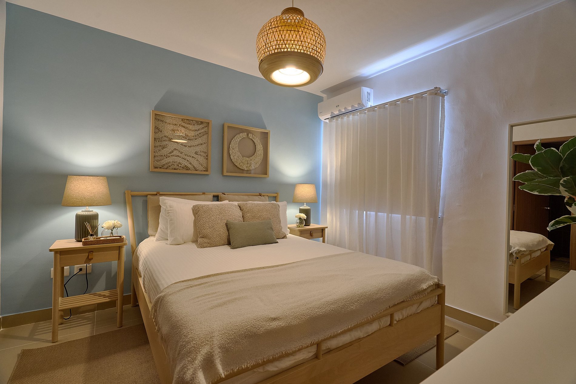 Enjoy the luxury experience of a 5-star hotel with the freedom to explore all that Punta Cana has to offer. This one-bedroom apartment is designed for a comfortable and relaxing vacation for you and your family. It sleeps 4 and includes a comfortable futon in the living room. All its spaces are integrated into an open plan for sharing while enjoying different activities. It's fully air-conditioned for Punta Cana's sweltering heat. You can prepare delicious meals, watch your favorite series, or enjoy the gentle Caribbean breeze while sipping a refreshing drink on the balcony. With two full bathrooms, you can get ready for adventures without a problem. And above all, you can return for a hot shower for a comforting rest on our pillowtop mattress and comfortable pillows. A charming rustic design and fast internet access are available in case you need to answer some work while on vacation. Go on all-day adventures and return for a guaranteed restful sleep in this haven of peace designed for a luxurious stay without worries, including the cost of electricity.