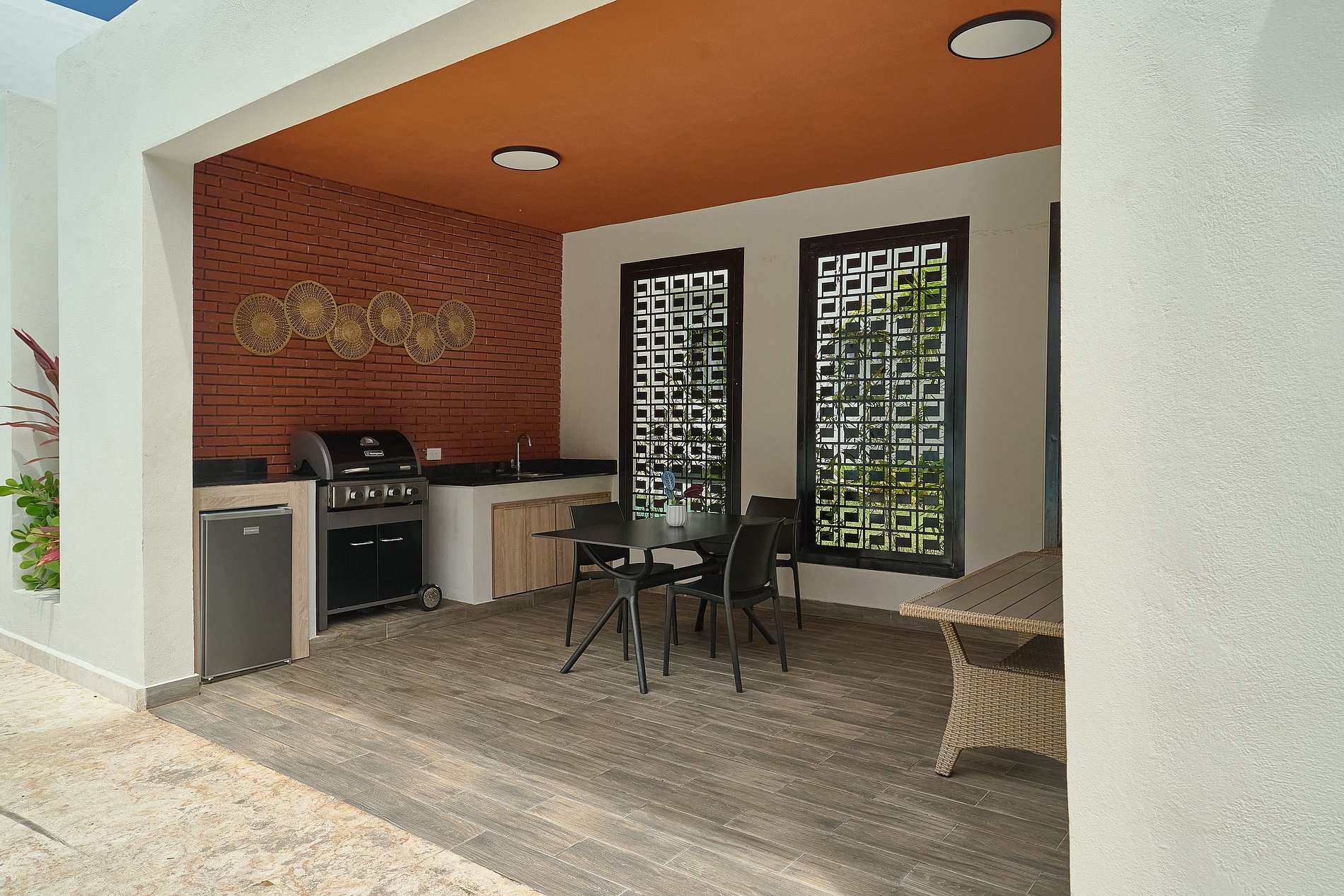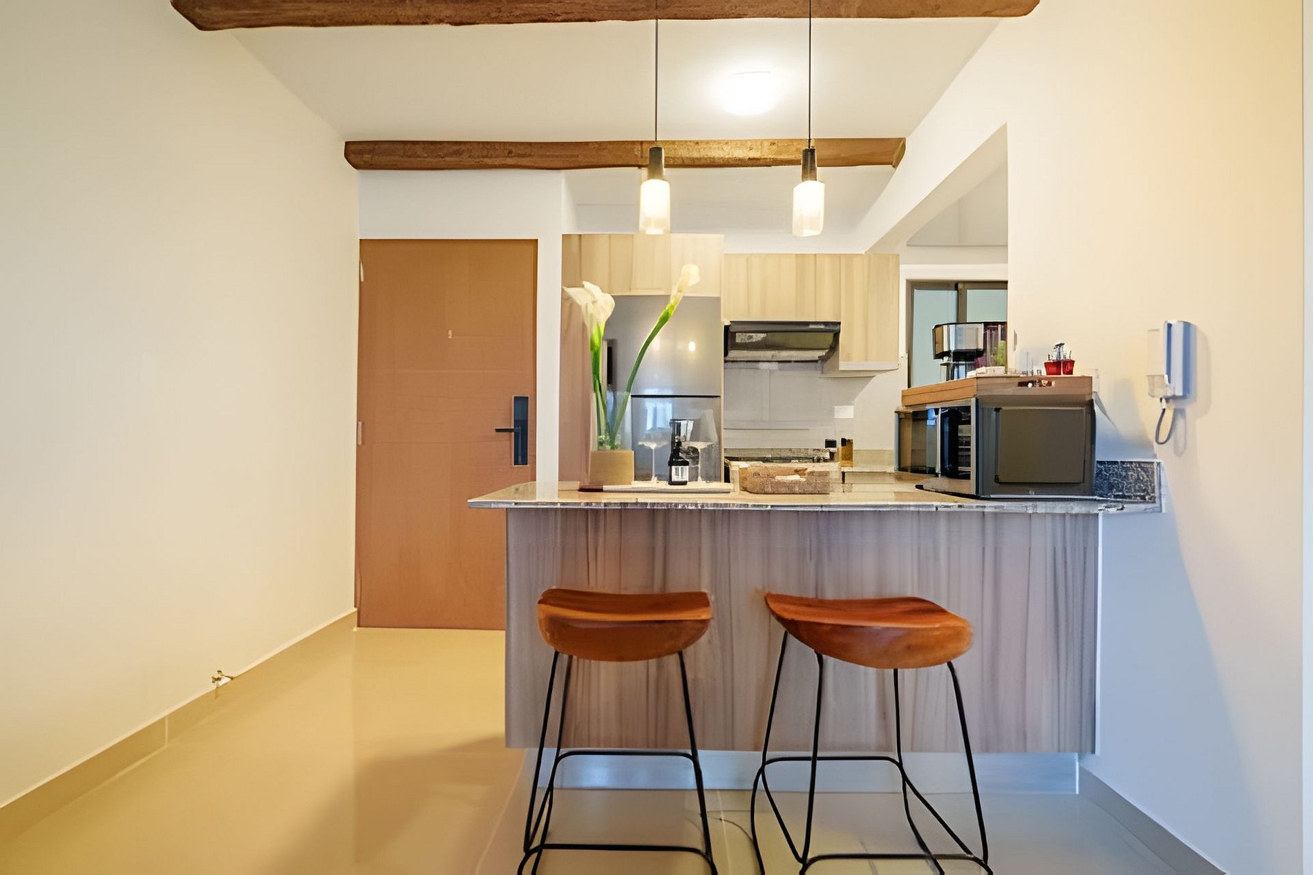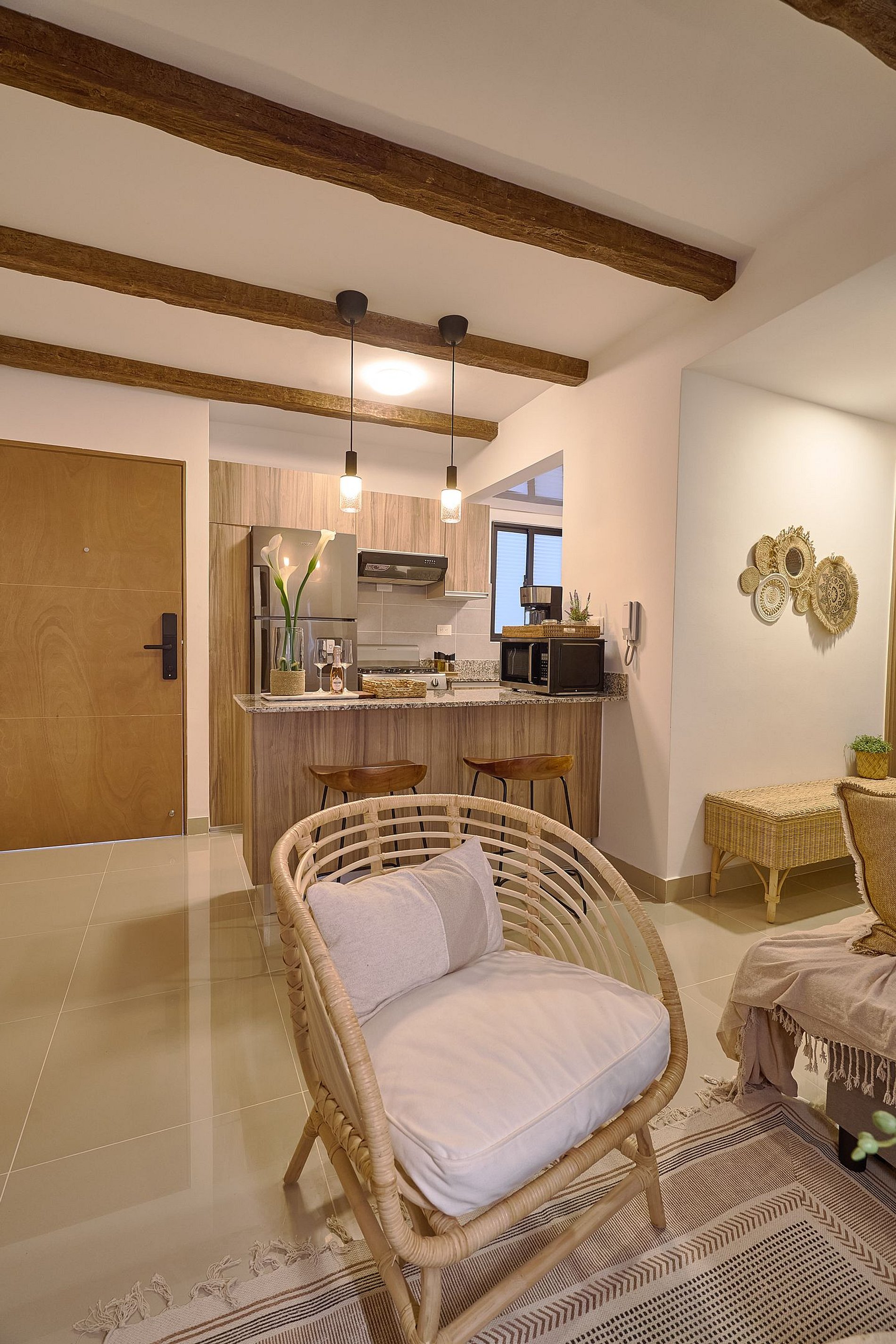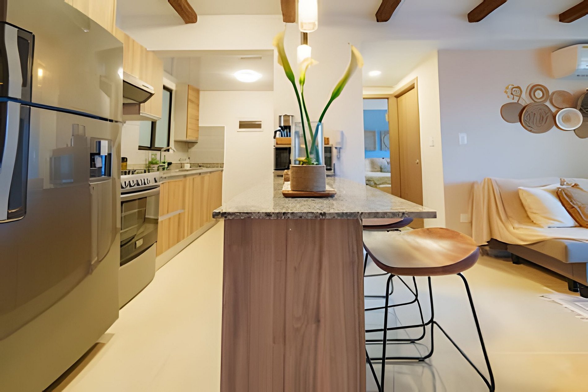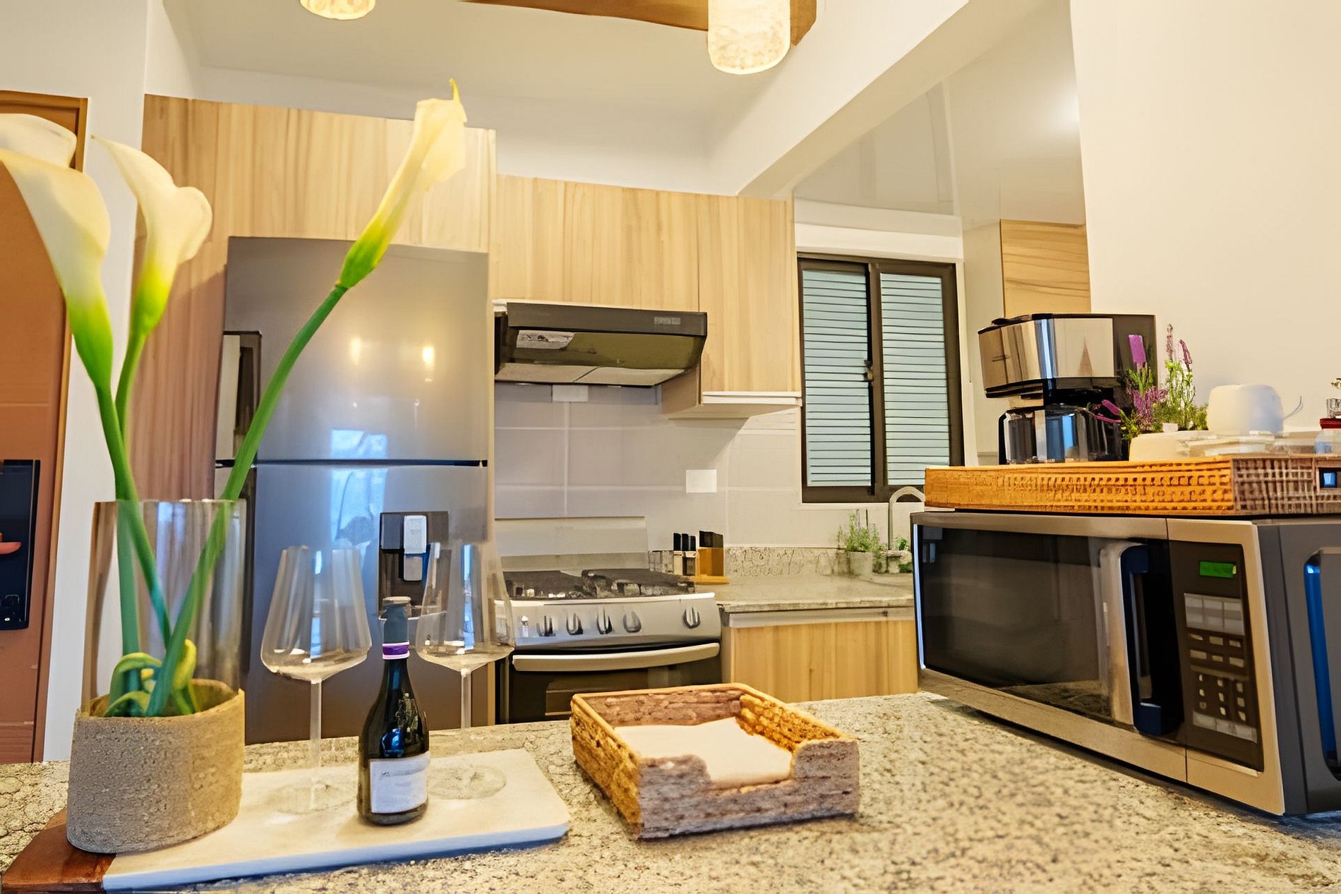 Enjoy the luxury experience of a 5-star hotel with the freedom to explore all that Punta Cana has to offer. This one-bedroom apartment is designed for a comfortable and relaxing vacation for you and your family. It sleeps 4 and includes a comfortable futon in the living room. All its spaces are integrated into an open plan for sharing while enjoying different activities. It's fully air-conditioned for Punta Cana's sweltering heat. You can prepare delicious meals, watch your favorite series, or enjoy the gentle Caribbean breeze while sipping a refreshing drink on the balcony. With two full bathrooms, you can get ready for adventures without a problem. And above all, you can return for a hot shower for a comforting rest on our pillowtop mattress and comfortable pillows. A charming rustic design and fast internet access are available in case you need to answer some work while on vacation. Go on all-day adventures and return for a guaranteed restful sleep in this haven of peace designed for a luxurious stay without worries, including the cost of electricity.