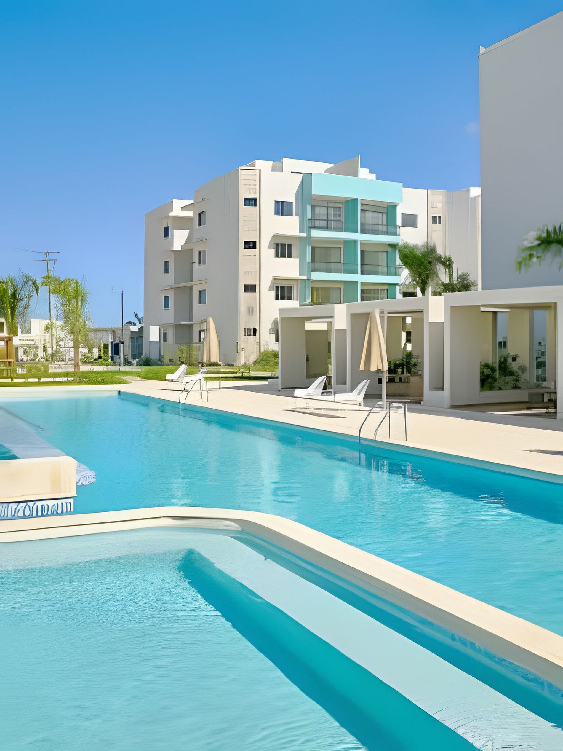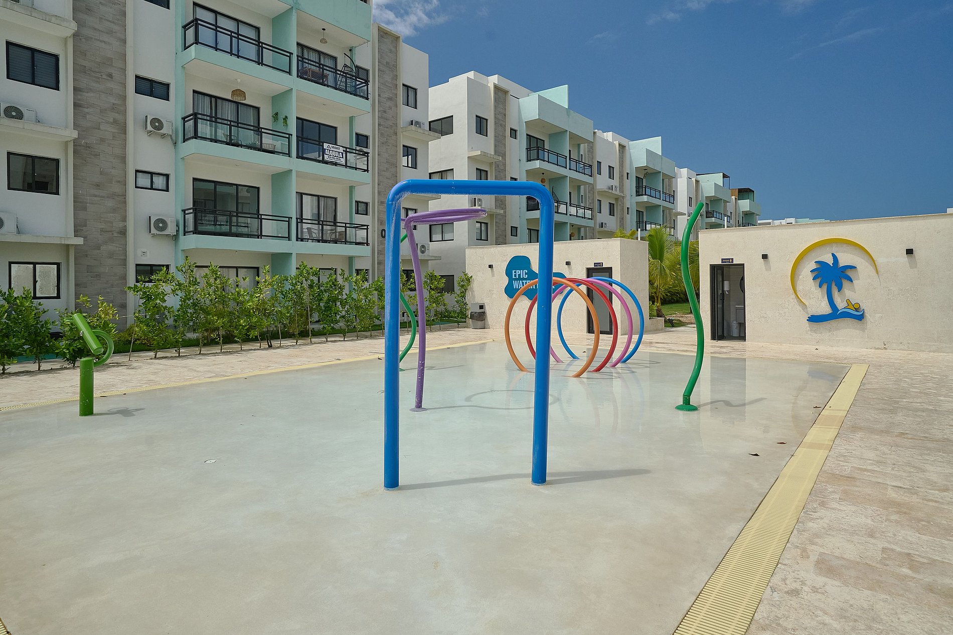 Epic Sun Residence is a newly built residential complex strategically located in downtown Punta Cana, just two minutes by car from the Boulevard Turistico del Este, Punta Cana's main thoroughfare. It is a gated complex, highly guarded, and well-lit at night, making it the ideal place to freely enjoy the resort-style amenities designed and thought out for the whole family during your vacation, surrounded by lush vegetation. Within the Epic complex, you can find three swimming pools, one with a water park, a playground, an outdoor gym, a walking circuit, multiple outdoor lounge areas, and a barbecue area available upon reservation. Within the complex, each residential unit has its own assigned parking. Epic Sun Residence was designed and conceived as the ideal place for your vacation in Punta Cana, with the freedom to explore all the adventures that await you.