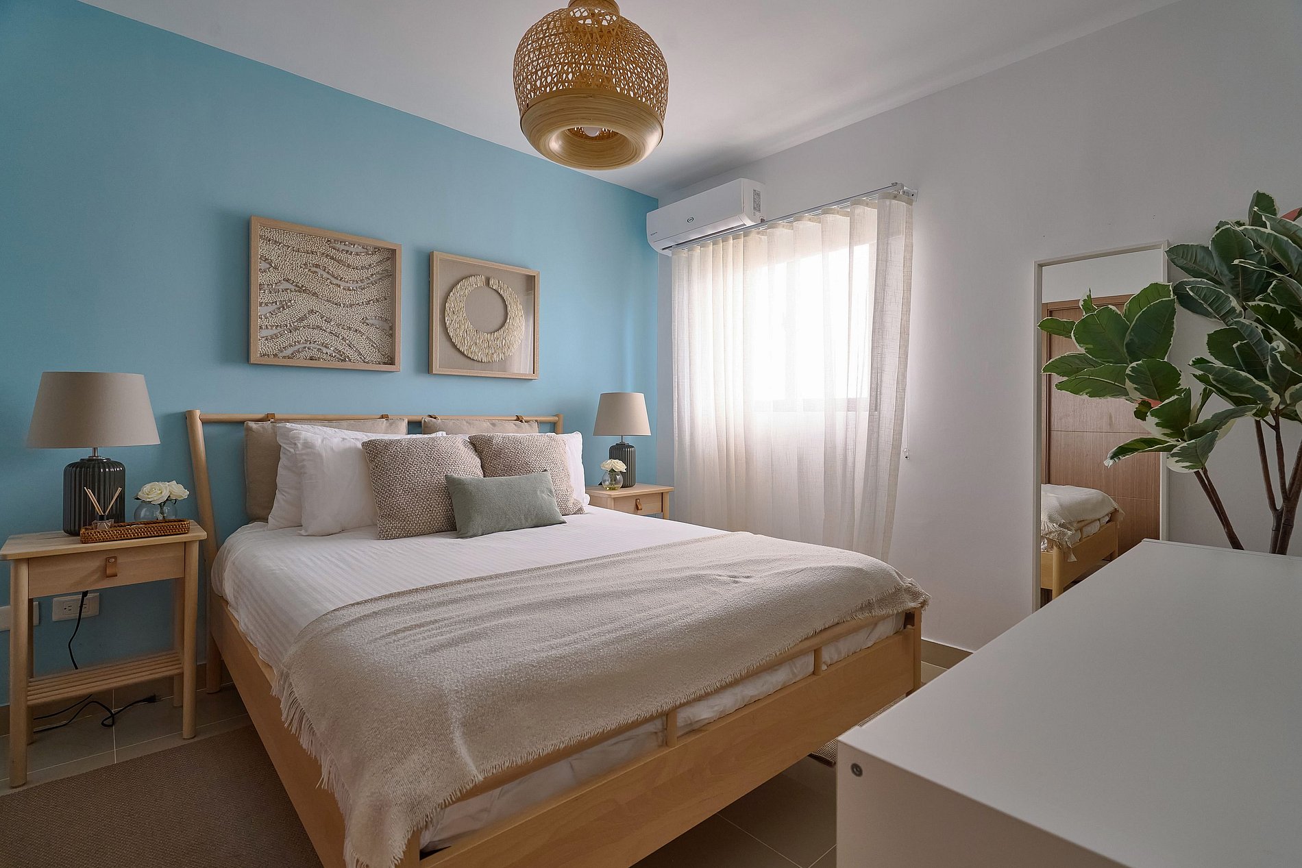 In the center of Punta Cana you will find this newly decorated and very well-equipped apartment, in an equally new complex with all the amenities of a resort so that your vacation is completely safe, relaxing and with the freedom to explore all of Punta Cana, its beaches and the great nightlife and adventure in a few minutes due to the easy access offered by its location. With easy access and just 15 minutes from Punta Cana International Airport.