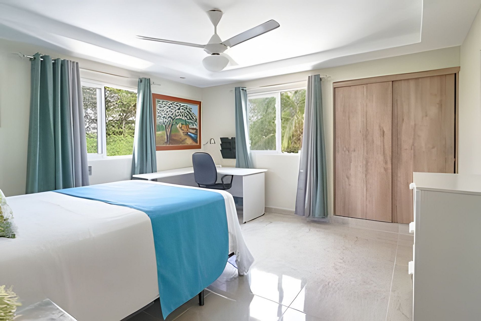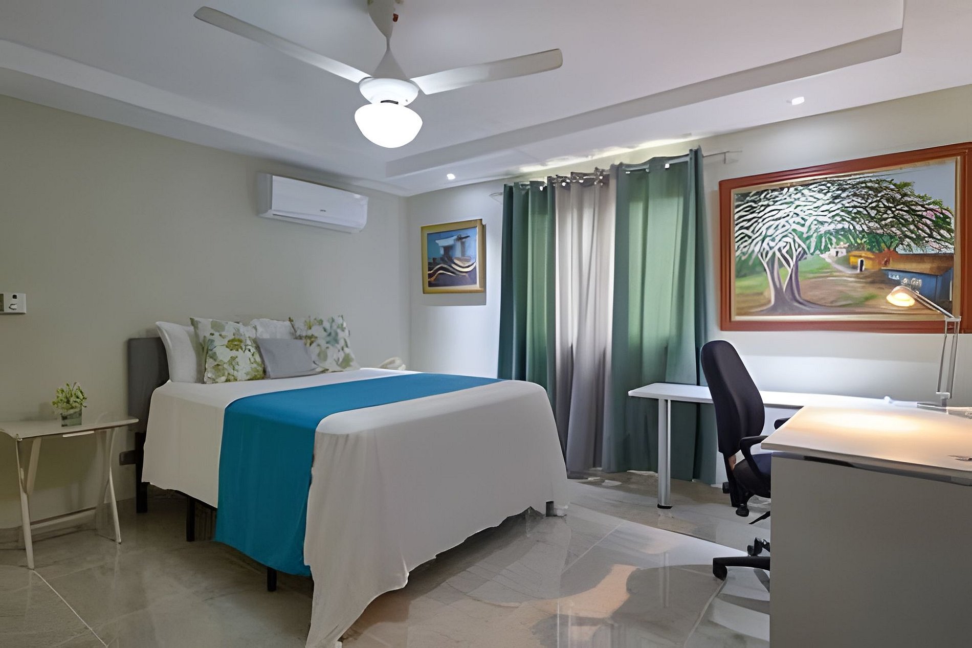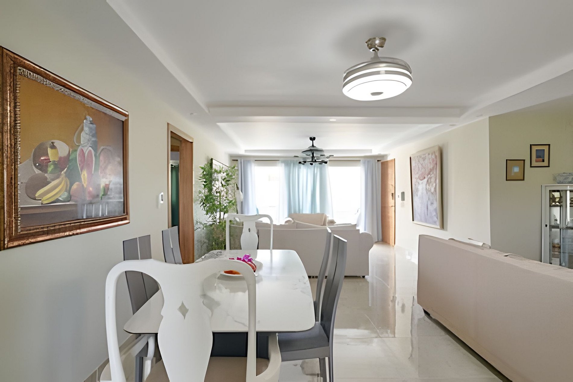 Just steps away from Hemingway Beach, Juan Dolio, in a very discreet and cozy complex, this apartment, ideal for group getaways with friends, families or couples, with all the amenities and comforts necessary for your stay to be totally relaxing, very close to all the life of the most cosmopolitan fishing village in the Dominican Republic, where you can enjoy endless facilities just a few steps away. With easy access to main roads, and just 25 minutes from Las Americas Airport. Spacious apartment, full of light and natural ventilation in all its spaces, with all the comforts you can expect for a perfect stay, to share with friends and/or family on a getaway just steps from Hemingway Beach, Juan Dolio. In an integrated plan from the balcony to a fully equipped kitchen to share with the rest of your guests while you prepare delicious dishes, spacious and comfortable bedrooms with TV and air conditioning to recharge all the energy spent during the day, after a refreshing shower in any of its two large bathrooms, it is the ideal place for your long-awaited vacation in a beach town, with a dynamic life. Guests can enjoy all the amenities of the resort, a swimming pool with a bar area for their use while they relax in the social area, with prior reservation of a private room for activities of up to 10 people and reservation to use the grill. A pool deck furnished with tables, umbrellas and lounge chairs, in addition to a closed parking lot, with one available space, and 24/7 security. Our guests will always be well looked after, just a message away. To use the private lounge and BBQ area you must book in advance, also keep in mind that these are spaces shared with guests from other units.