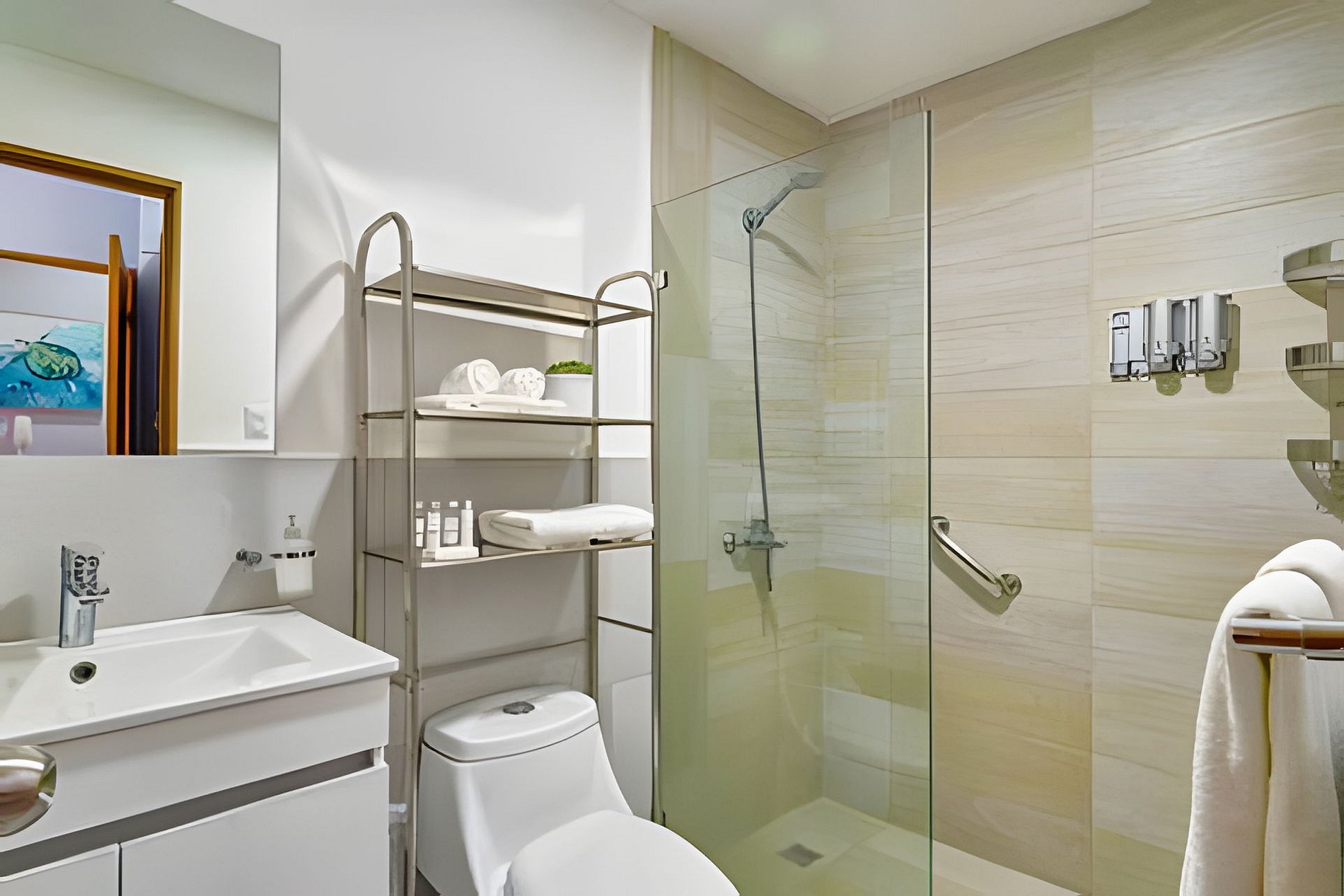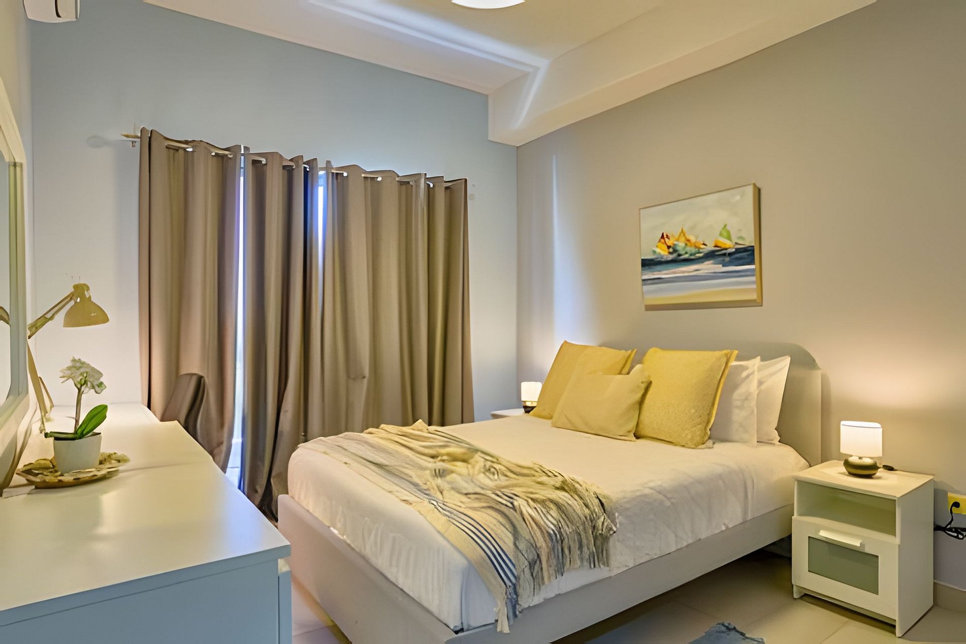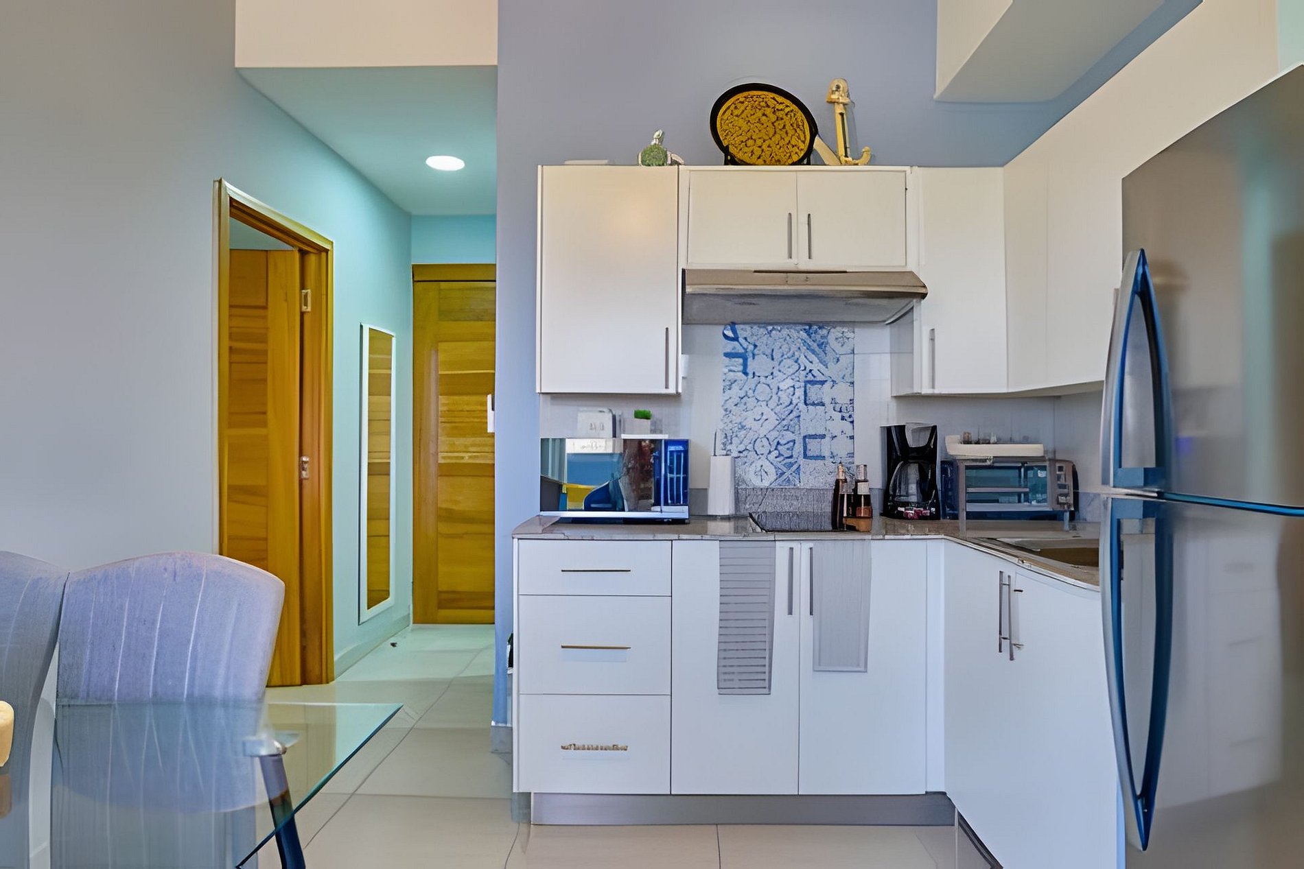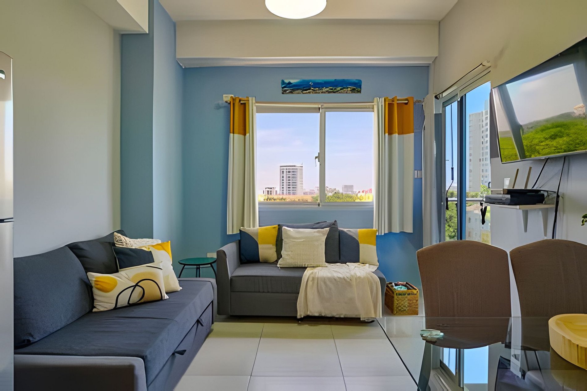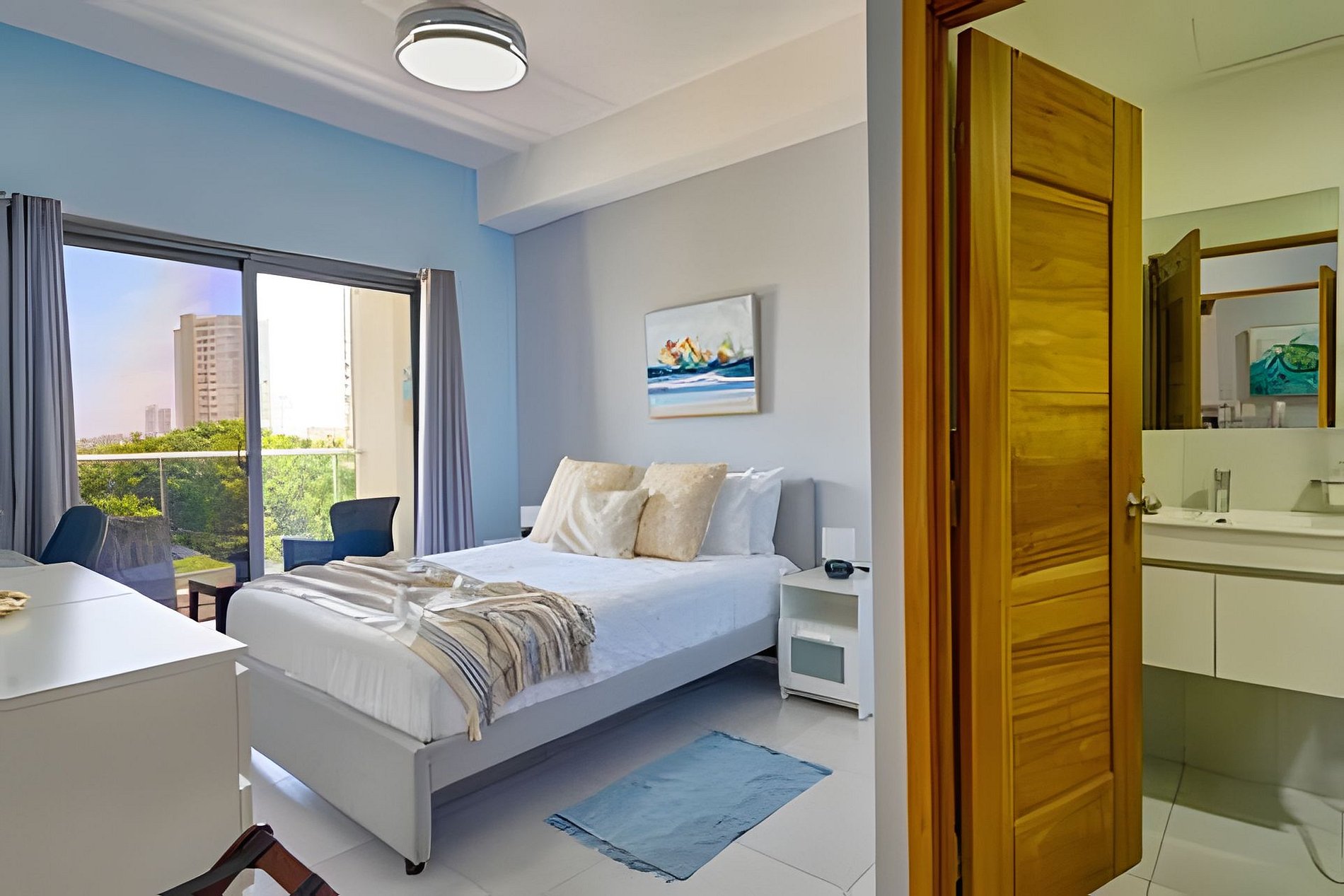 with access to all the amenities of the complex, just 2 minutes from the beach, 20 minutes from Las Americas Airport, steps away from shops, restaurants, pharmacy and finance, also a swimming pool, games for children, board games for adults, a pleasant and spacious living area, and a gym. In addition to easy access to everything around.