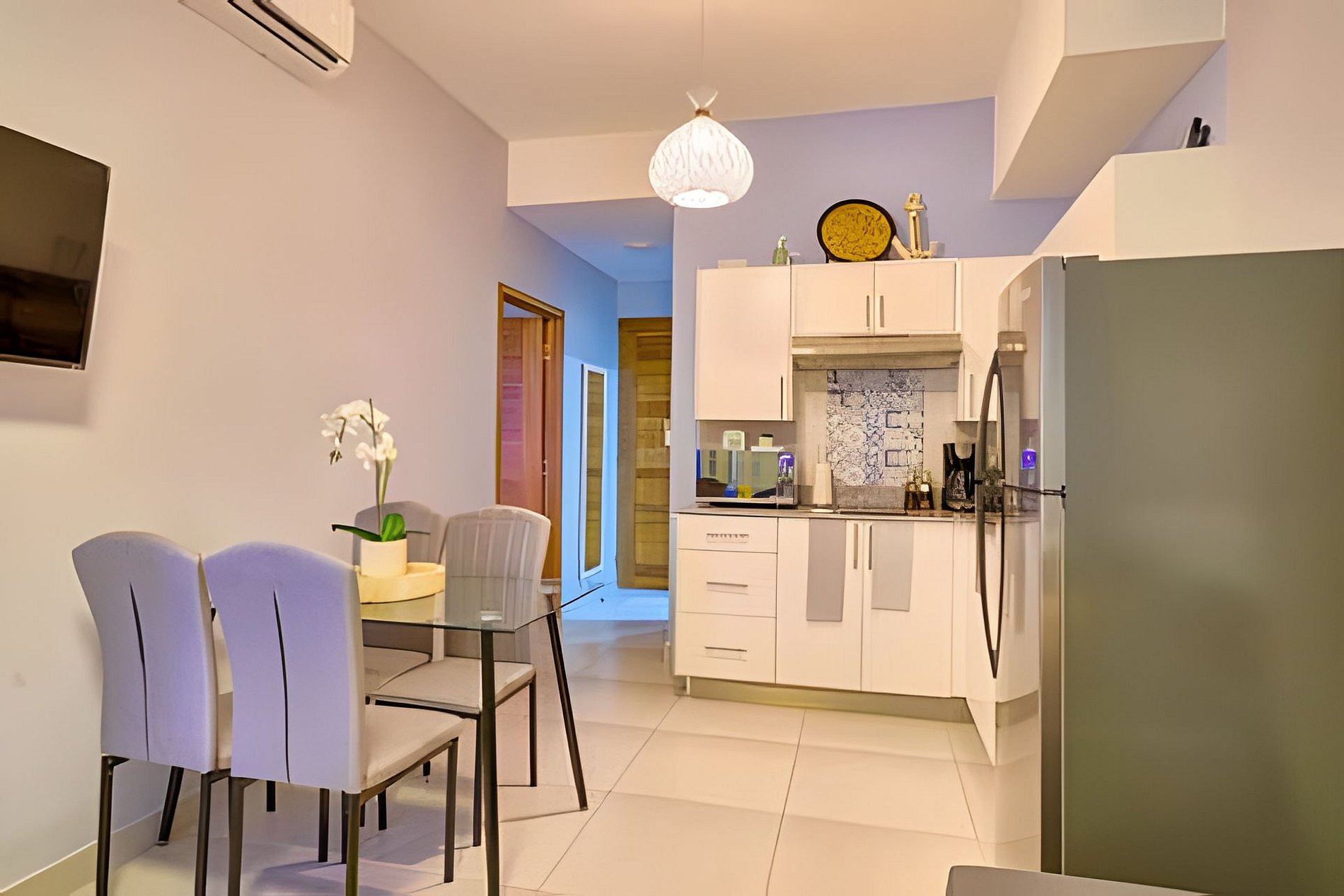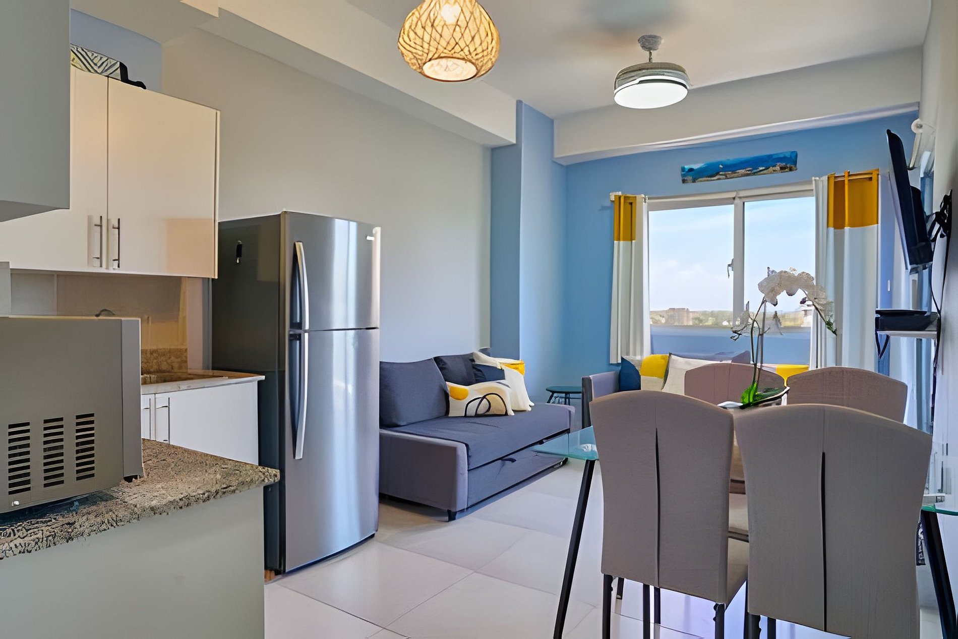 with access to all the amenities of the complex, just 2 minutes from the beach, 20 minutes from Las Americas Airport, steps away from shops, restaurants, pharmacy and finance, also a swimming pool, games for children, board games for adults, a pleasant and spacious living area, and a gym. In addition to easy access to everything around.