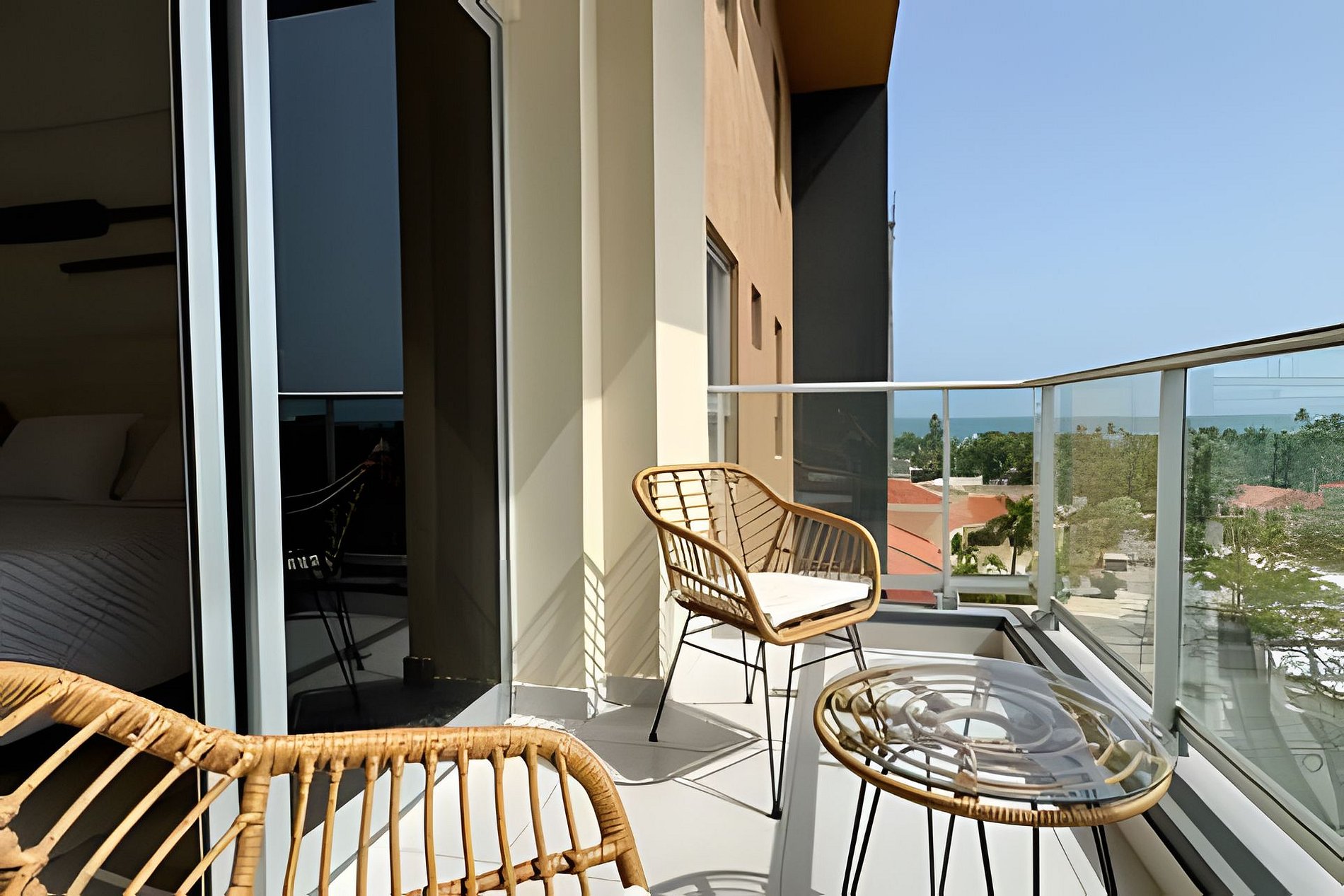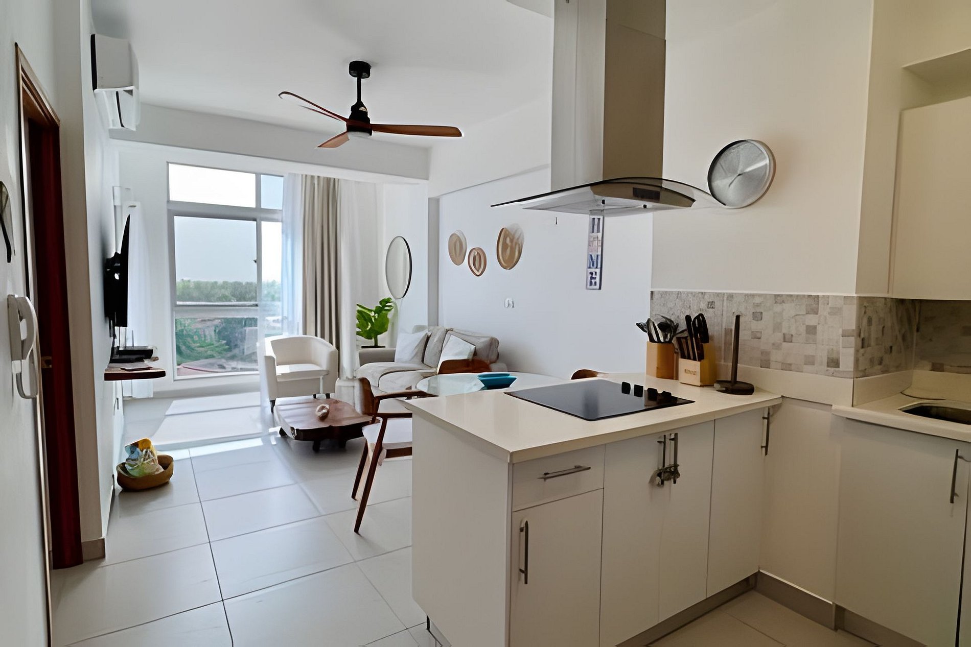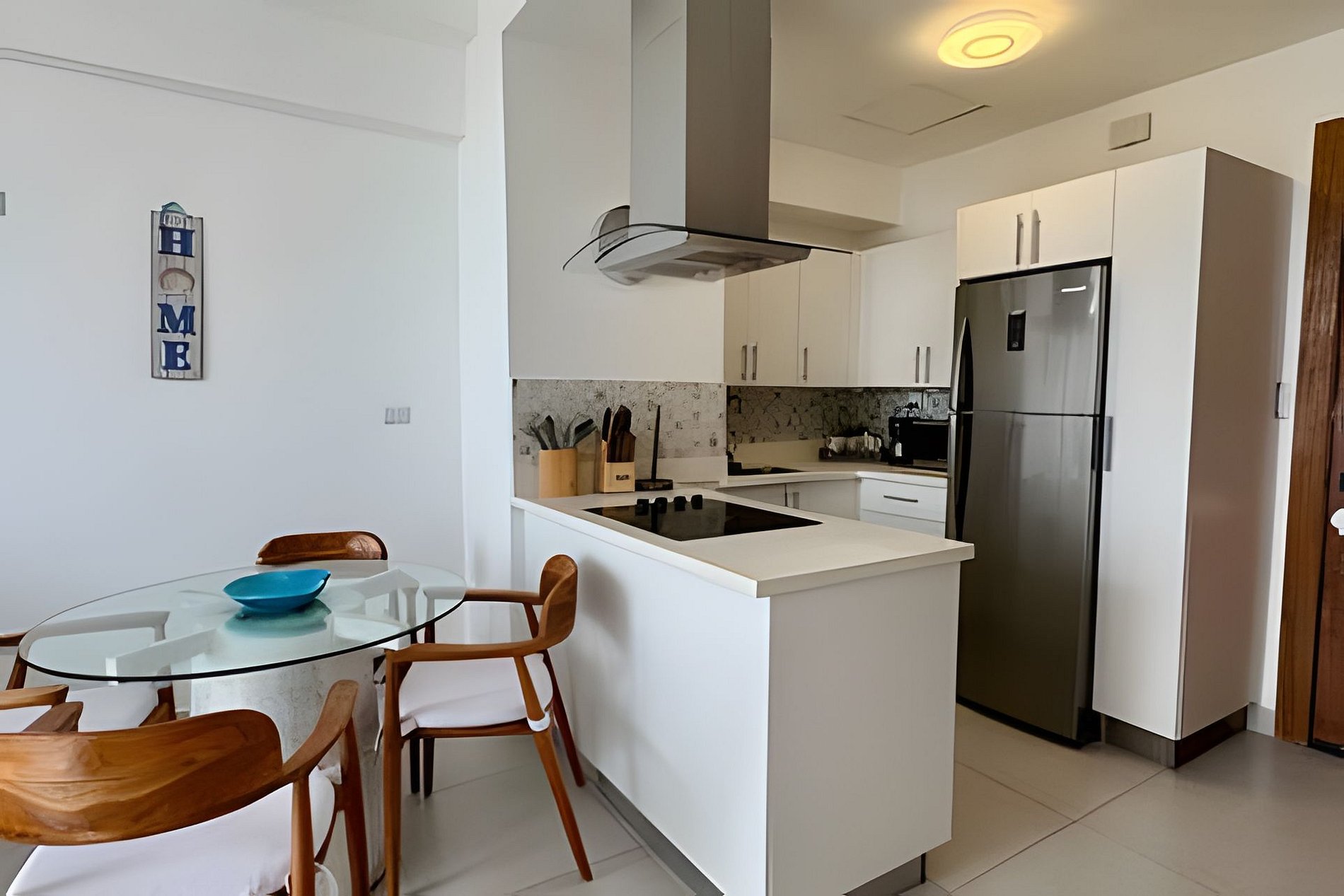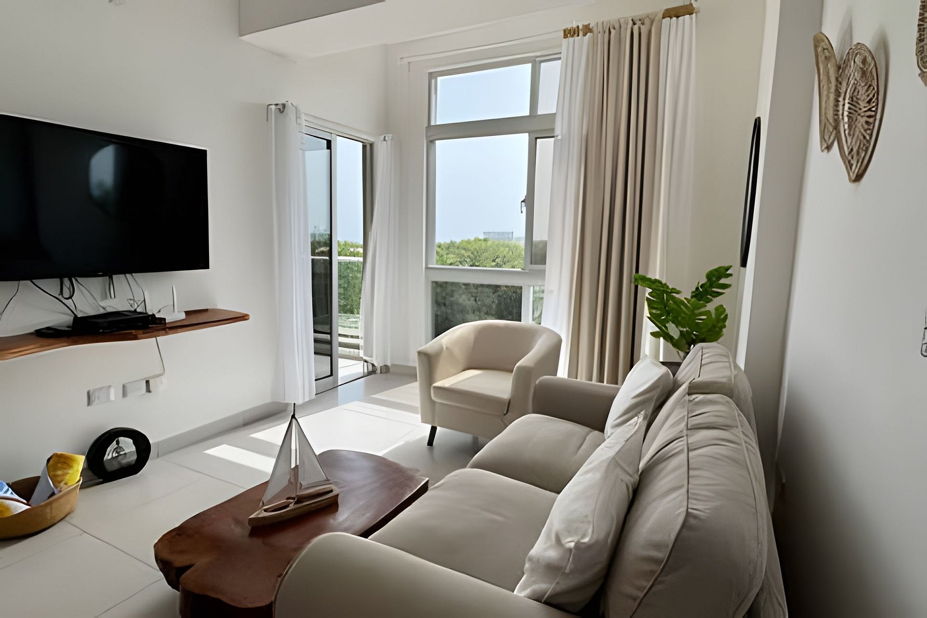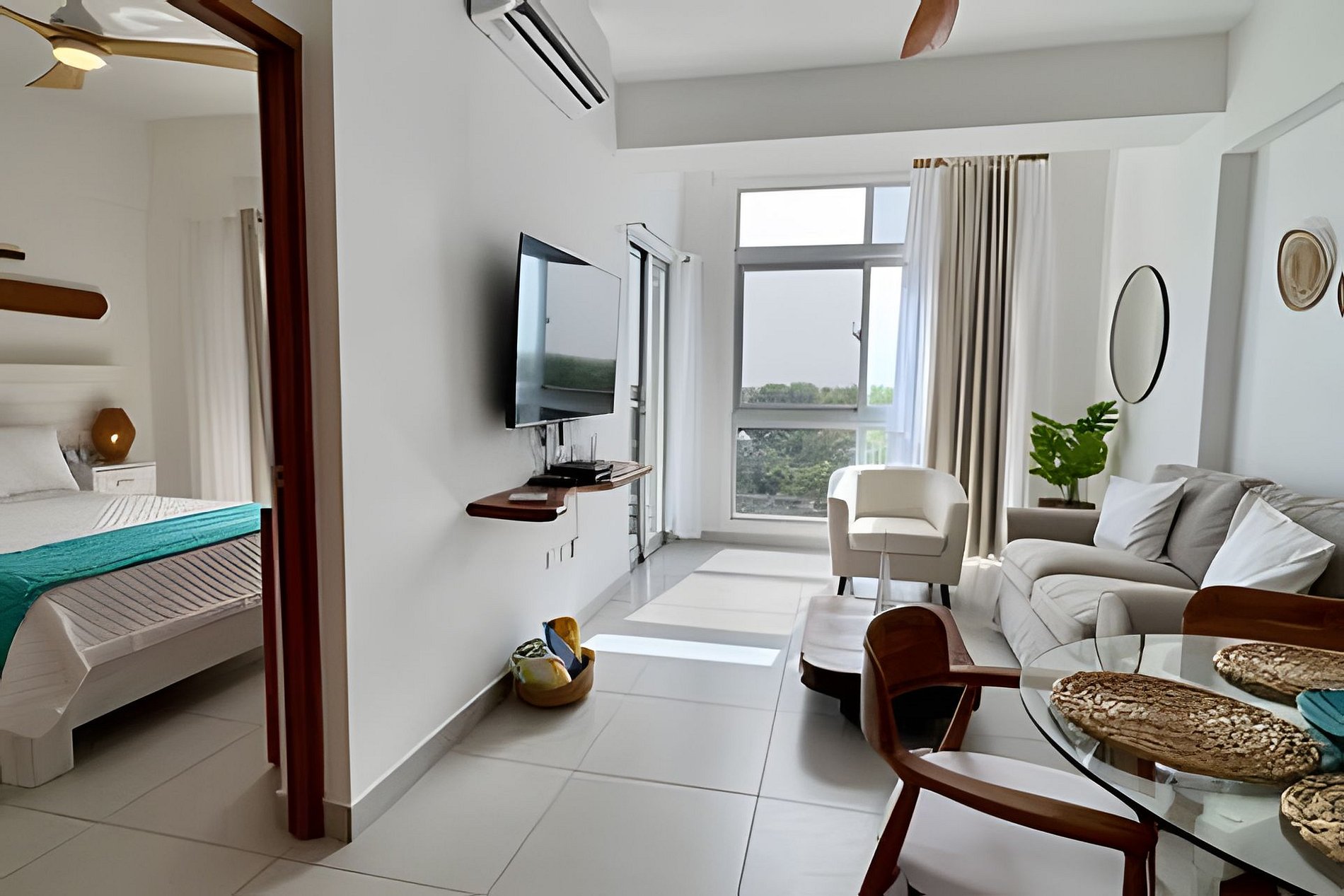 A spacious, bright, and comfortable one-bedroom apartment, ideal for your dream vacation for two. Every detail and decorative element has been designed to convey peace, relaxation, and comfort, without detracting from the spectacular views through its large windows. This accommodation features fully integrated spaces in an open-plan design, where you can share time while engaging in various activities, such as preparing delicious meals in the fully equipped kitchen, watching a movie on the sofa, or enjoying the warm Caribbean breeze from your spacious balcony, all while enjoying the views of the splendid sunsets over the waves of the Caribbean Sea.