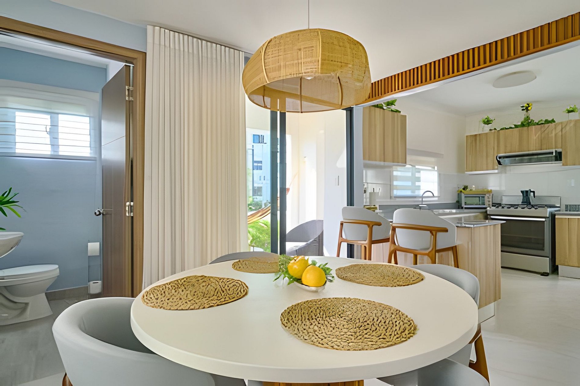The place was designed for your vacation in Punta Cana in a newly built villa a few meters from the entire city center with the amenities you need to spend a relaxed and quiet vacation enjoying everything Punta Cana has to offer in a complex with luxury amenities. cozy Villa that from the moment you cross the door makes you feel in a comfortable space with details carefully curated for comfort, sharing and rest after a whole day of adventures in the exciting Punta Cana, just 10 minutes from the International Airport, and very close to everything. For two or four people, with two very comfortable bedrooms, a fully equipped kitchen, air conditioning in all spaces and a laundry area within a complex full of amenities so that each day of your stay is better than the other. Close to the best beaches in the area, restaurants, bars, amusement parks and shopping centers, this house is a haven of peace after so much fun, full of natural light that bathes every corner of the house, in a quiet and extremely Sure, a hot bath will be the seal of every exciting day you spend here. Within a gated complex with luxury amenities such as: two swimming pools, jacuzzi, large terraces, outdoor play area and gym, and a sand soccer field. Our guests will always have our full attention Epic Sun Residence is a newly built residential complex strategically located in downtown Punta Cana, just two minutes by car from the Boulevard Turistico del Este, Punta Cana's main thoroughfare. It is a gated complex, highly guarded, and well-lit at night, making it the ideal place to freely enjoy the resort-style amenities designed and thought out for the whole family during your vacation, surrounded by lush vegetation. Within the Epic complex, you can find three swimming pools, one with a water park, a playground, an outdoor gym, a walking circuit, multiple outdoor lounge areas, and a barbecue area available upon reservation. Within the complex, each residential unit has its own assigned parking. Epic Sun Residence was designed and conceived as the ideal place for your vacation in Punta Cana, with the freedom to explore all the adventures that await you. Sun Epic is located one kilometer from the main road, less than two minutes by car. Its access road has been recently repaired and is now illuminated. However, I recommend using Uber if you're not coming in your own or rented vehicle. Uber works very well without extra charges outside of their platform. Public transportation doesn't operate in this part of Punta Cana. However, everything is very close: Downtown, Cocobongo, a variety of restaurants, shops, and supermarkets are less than 5 minutes away, Punta Cana International Airport is about 15 minutes away, and various beaches are within 10-12 minutes, so the Uber fare won't be expensive. Easy access for delivery's and taxis, a little removed to walk to the main road, in a closed and secure project 24 hours a day, every day of the week.