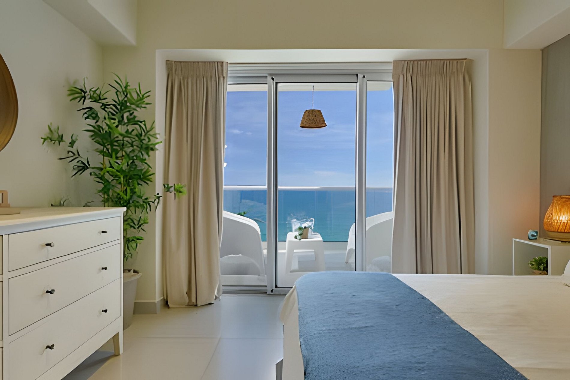 Have you ever been left breathless by the views of the Caribbean Sea? I assure you that the views from this modern and spacious studio apartment are on another level, you can breathe peace, the sea breeze and sunsets that you will not be able to decide whether to go down to the shore of the beach romantically or stay enjoying it in a spacious but cozy setting. balcony. The experience of waking up and feeling like you are floating in the sea will be one of the memories of this accommodation. Modern decoration, lots of natural light that floods the entire space, comfortable furniture, large bathroom and a fully equipped kitchen on the shores of one of the best beaches in the East of the Dominican Republic, Juan Dolio, is what awaits you just 20 minutes from the Las Americas International Airport. On the 13th floor, in the very center of the exuberant Aquarella Tower, which allows an uninterrupted 180-degree view of the Caribbean Sea and a bit of the most cosmopolitan fishing town in the country. What makes Juan Dolio special is that it is just approximately one hour from Punta Cana, Santo Domingo, Samaná, which you can easily go to see and return to paradise where relaxing is almost mandatory. **This incredible place, as described, can be occupied by two adults + 1 children under 12 years old.** Guests have access to all the services of the building, Sauna, Massage Rooms, gym, swimming pool, multi-purpose court and of course the use of all the beach furniture. With the incredible attention of the frontdesk staff who are always willing to help you with whatever you need with a broad smile and the kindness that characterizes them. Our guests will always have our full attention during their stay. Completely residential which makes the place even more exclusive, but it is very close to the main road, literally a 5 minute walk away there are two restaurants, you can walk along the street or along the beach. The most advisable thing if you are going to have a long stay is to have a vehicle at your disposal, if it is a short stay then the reception can recommend a trusted taxi. Although public transportation usually takes a while to pass through the main road. Torre Aquarella is located in a completely residential area, its beach is practically for the exclusive use of its inhabitants, which is why we have some measures to guarantee that nothing disturbs the peace of the place. We recommend that you go to the supermarket for your stay if you want to make your own food, however all the restaurants in the town, even if they are far away, offer home delivery, as well as all the shops, pharmacies, grocery stores, etc.