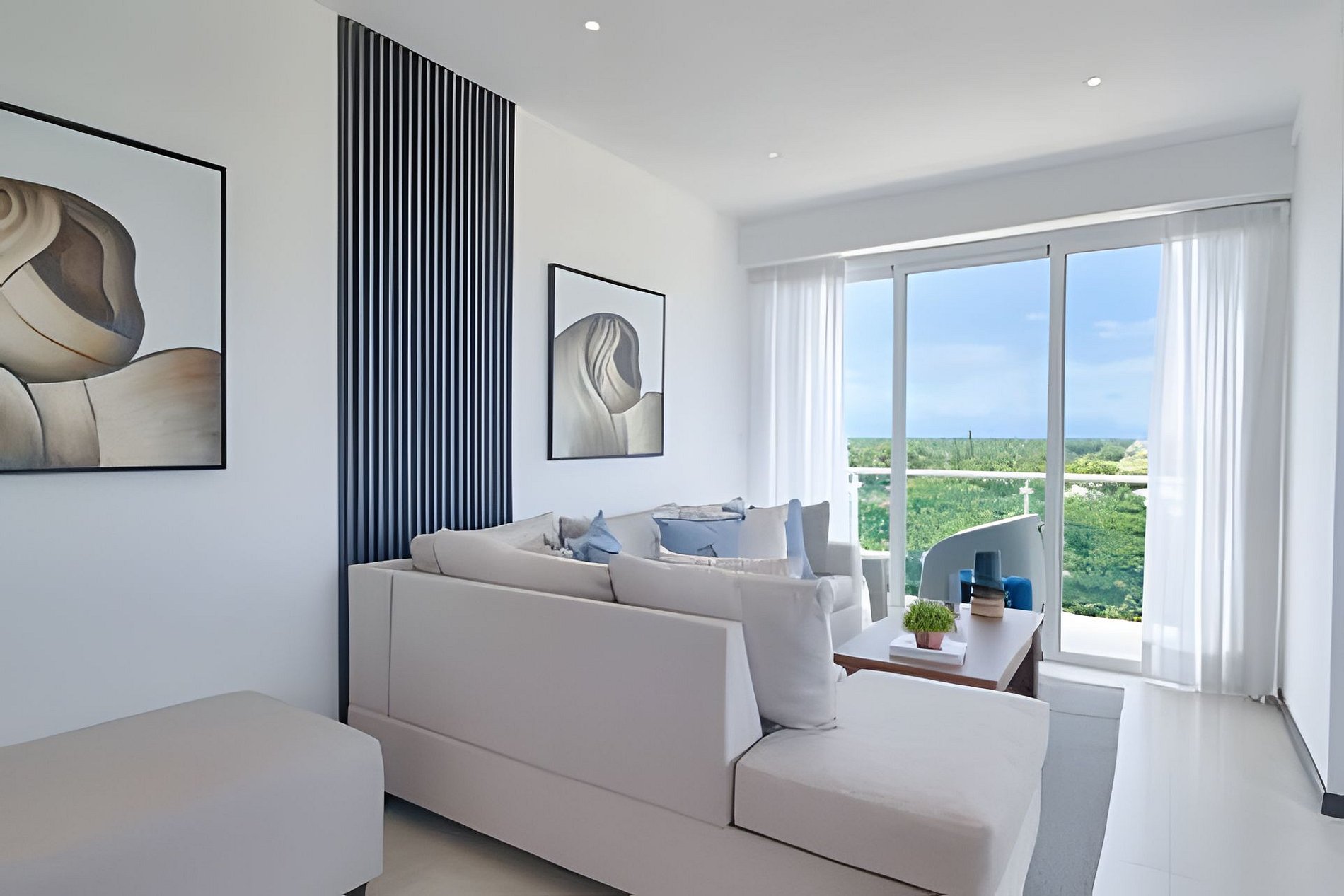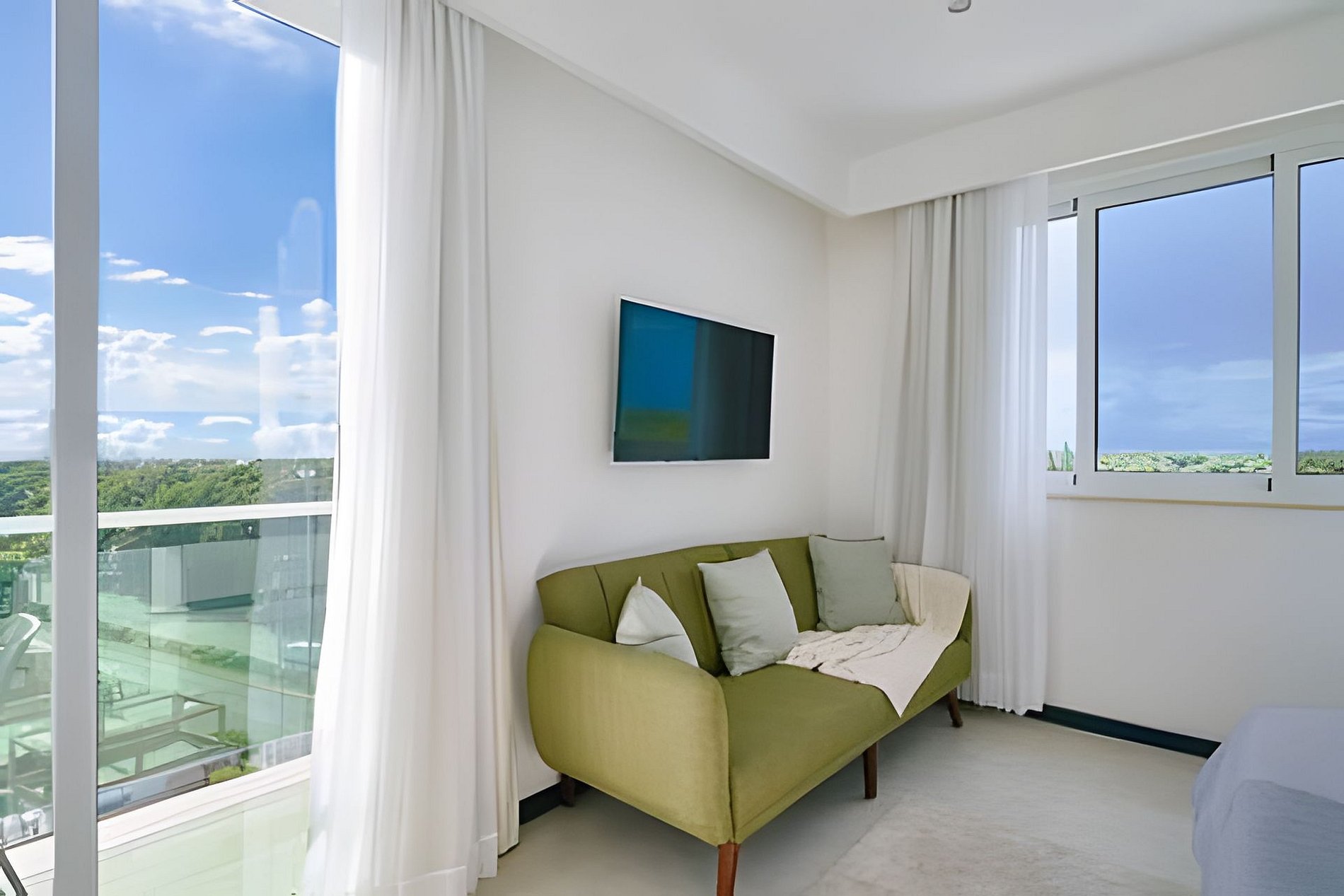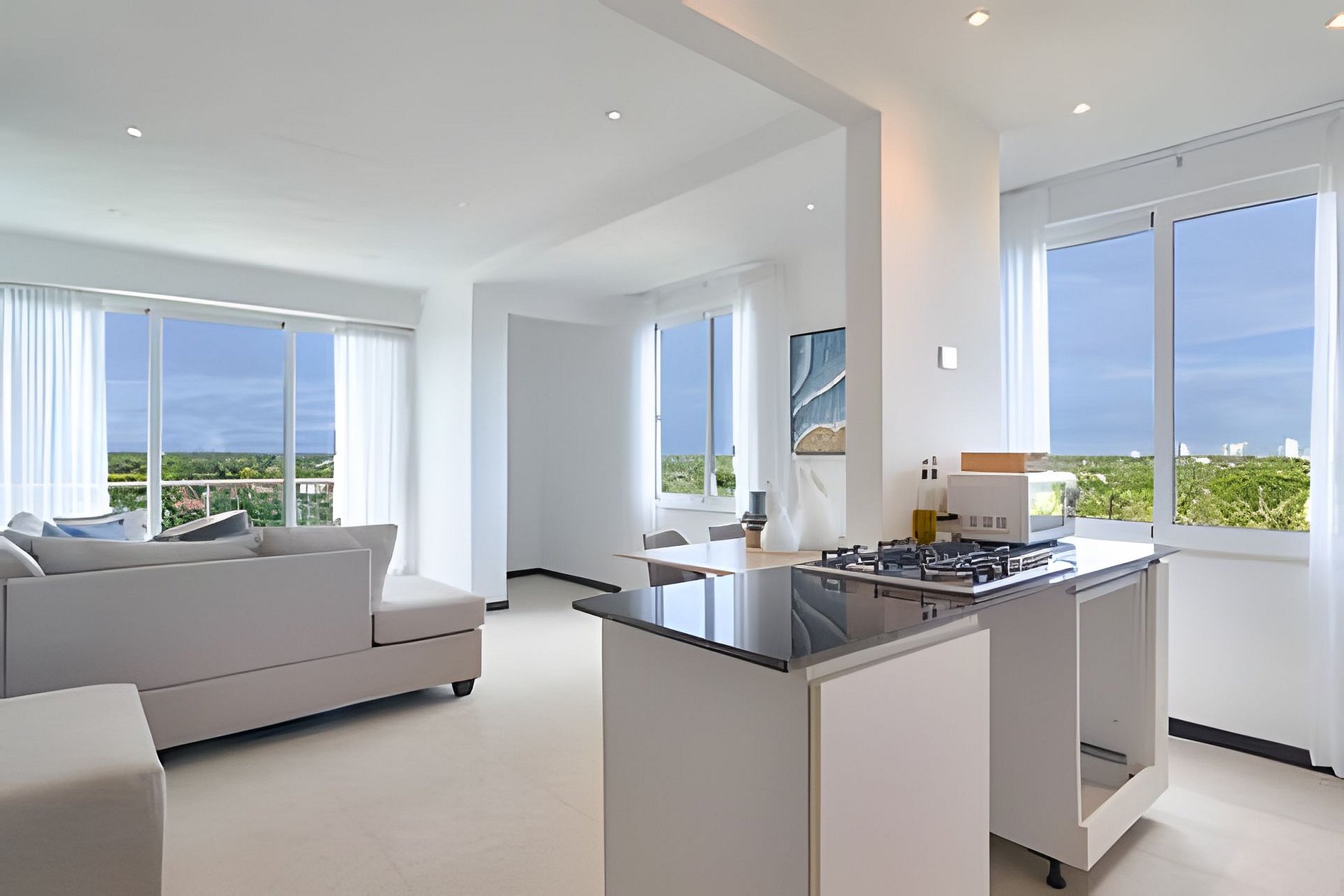Con toda la magia de un pueblo pesquero turístico sucediendo a tu alrededor tienes este espacioso apartamento de un dormitorio elegantemente decorado, lleno de la luz natural del Caribe, donde podrás disfrutar de una vista completa del mar, el horizonte de un pueblo cosmopolita en pleno desarrollo y la exhuberante vegetación que lo adorna, ideal para una escapada en pareja o un grupo de 3 amigos, en un edificio discreto, acogedor y poco concurrido, con acceso privado para caminar a la playa.