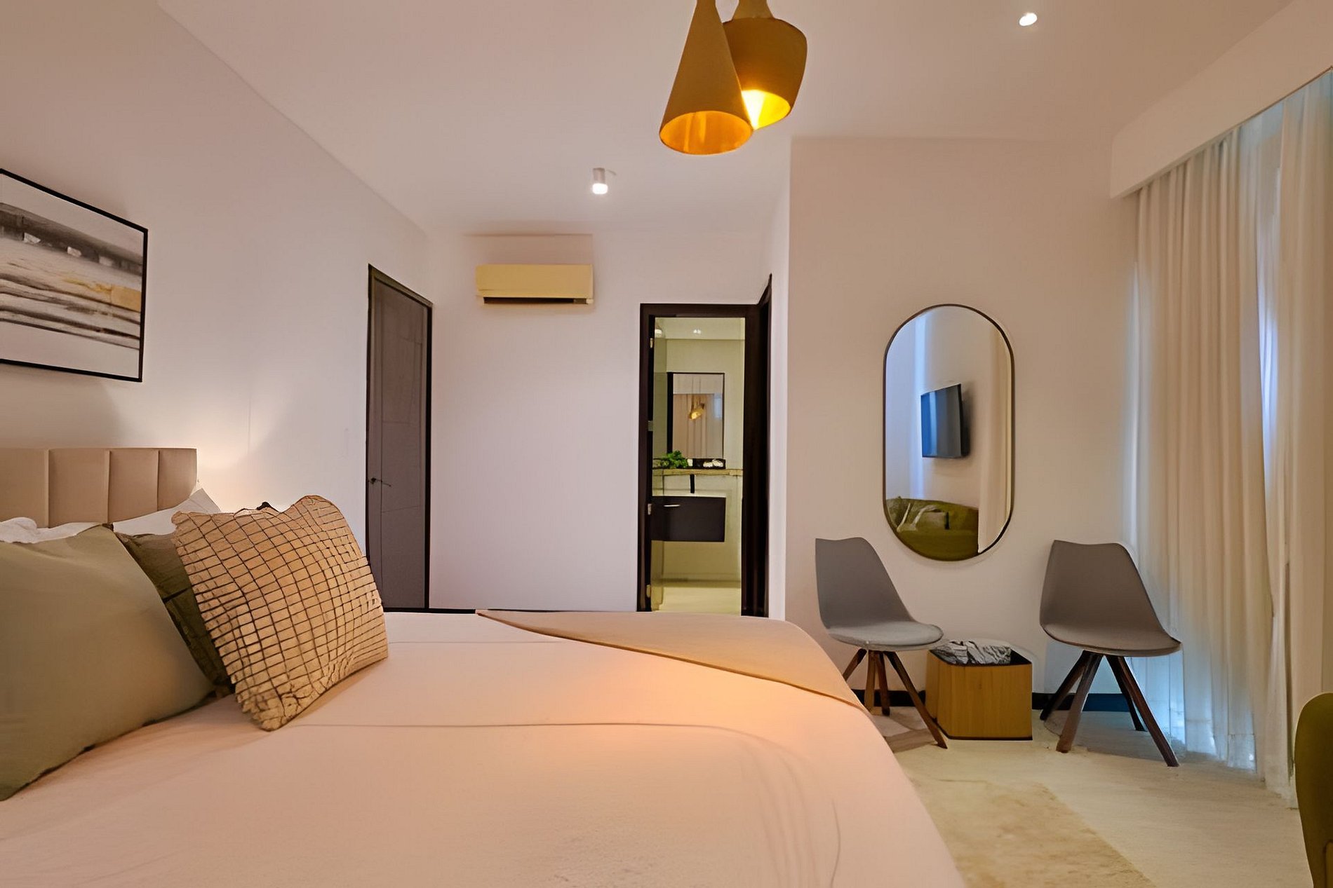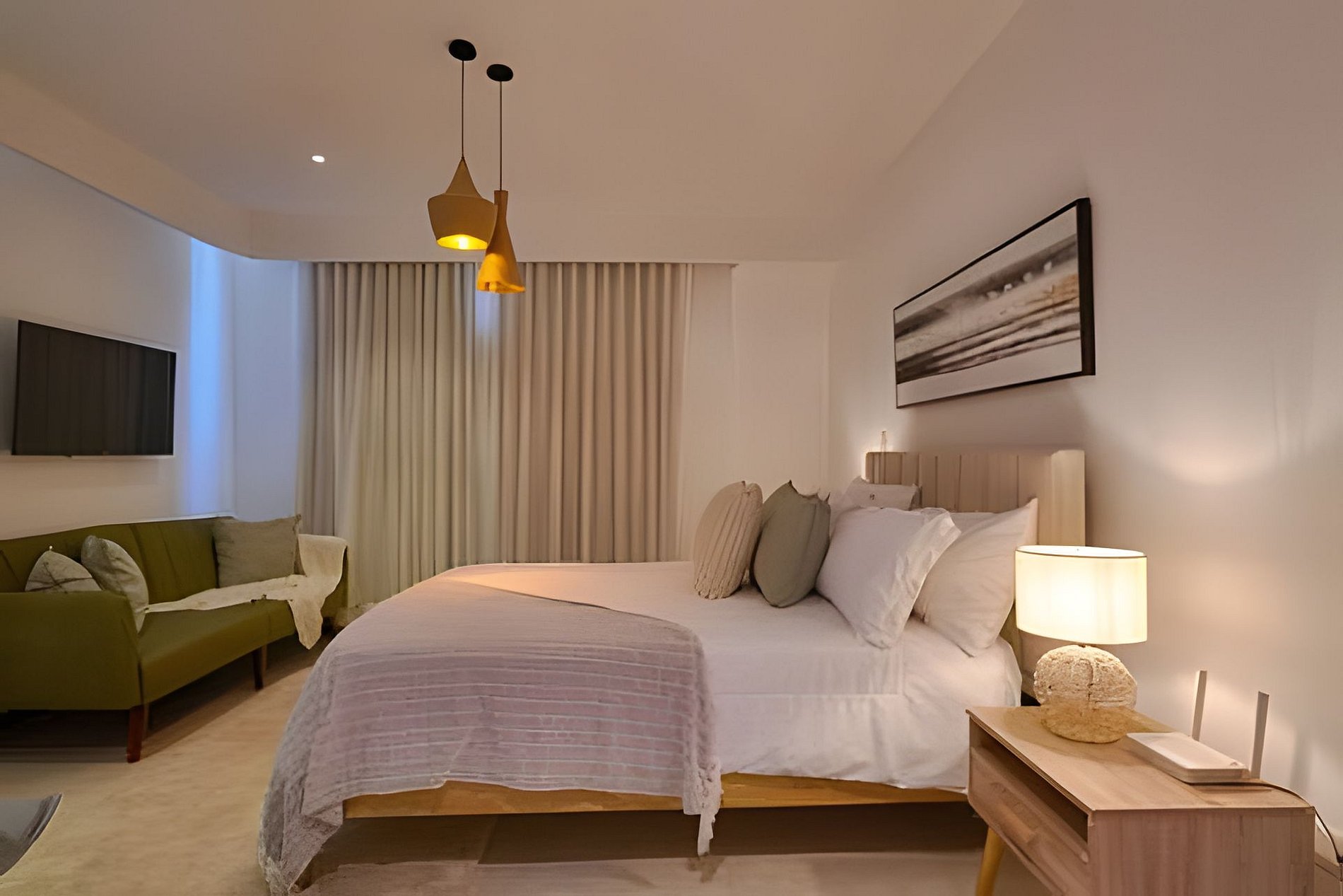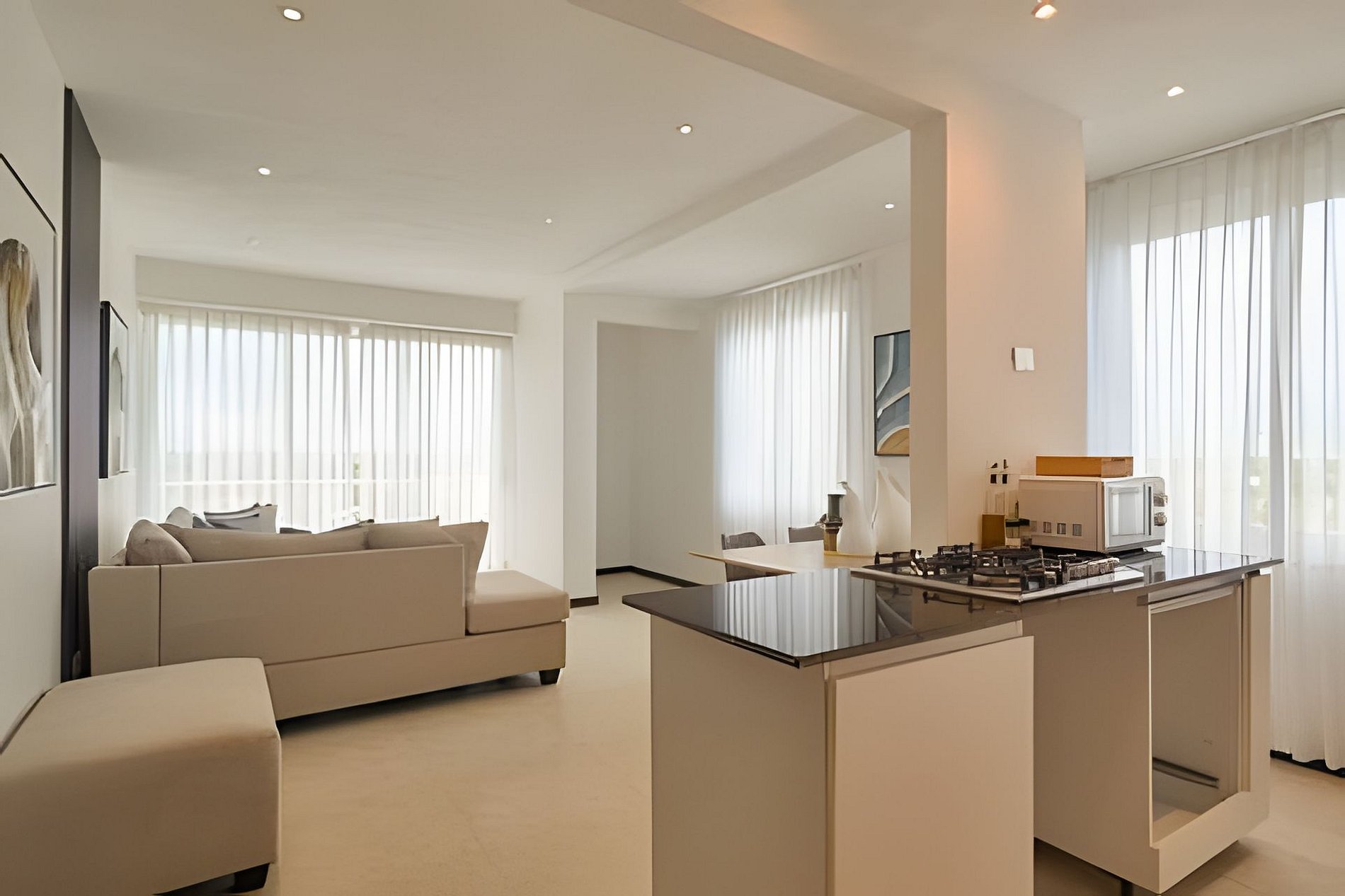 Con toda la magia de un pueblo pesquero turístico sucediendo a tu alrededor tienes este espacioso apartamento de un dormitorio elegantemente decorado, lleno de la luz natural del Caribe, donde podrás disfrutar de una vista completa del mar, el horizonte de un pueblo cosmopolita en pleno desarrollo y la exhuberante vegetación que lo adorna, ideal para una escapada en pareja o un grupo de 3 amigos, en un edificio discreto, acogedor y poco concurrido, con acceso privado para caminar a la playa.