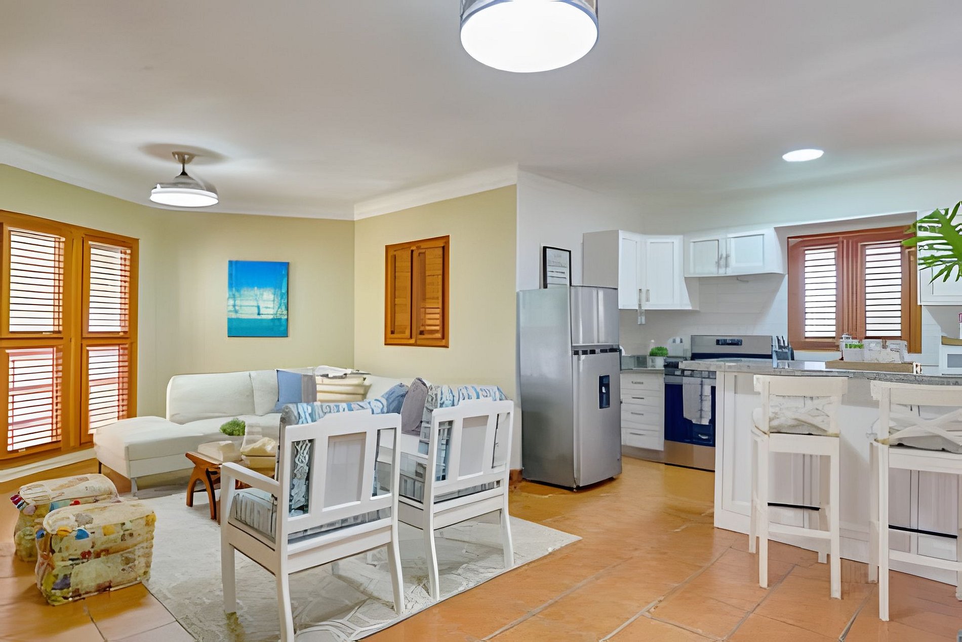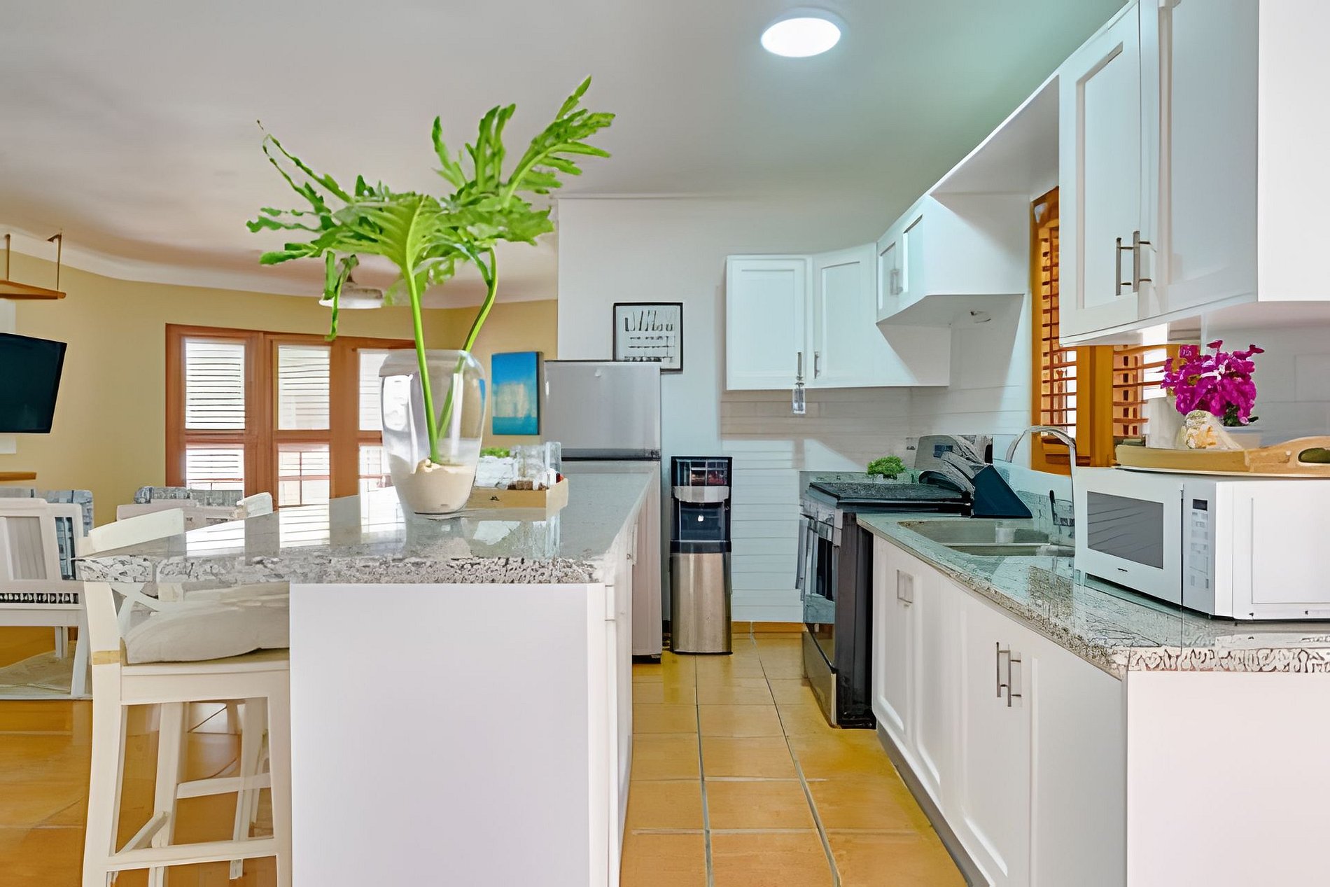 Enjoy the experience of living a few days next to the beach, being able to walk to a wide variety of restaurants and taste exquisite dishes or simply buy some ingredients at nearby small businesses and prepare them in a fully equipped, open concept kitchen while you share with your family loved ones, listening to the soft sound of the sea with background music to set the moment, and sitting down to taste them while enjoying the breath of the warm Caribbean breeze on the large terrace.
