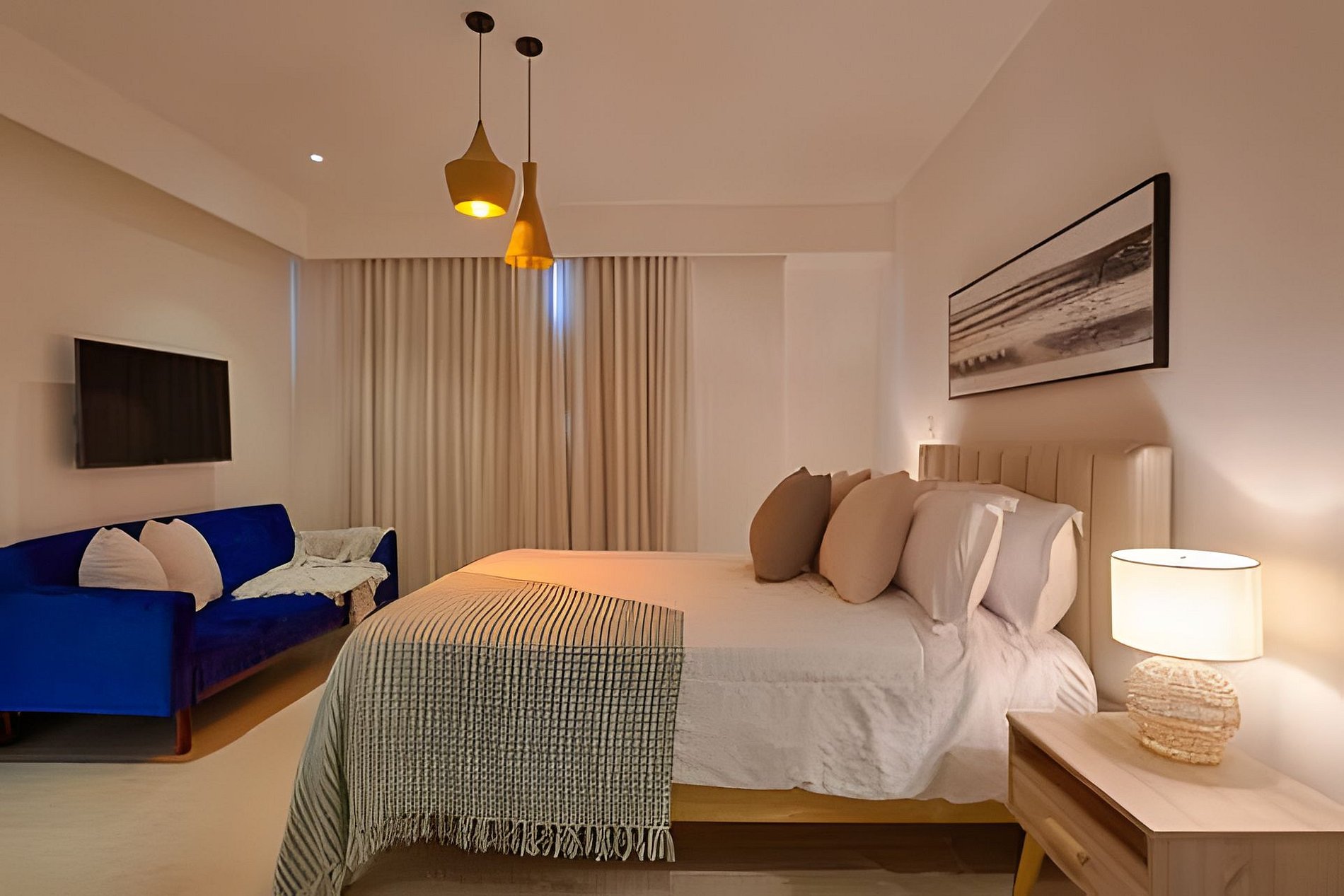The ideal place for a quiet and relaxing stay, as a couple or a small group of three friends, with private access to the beach, in a modern and newly decorated one-bedroom apartment, with spectacular views and full of natural light, you can enjoy from all the lush green of Juan Dolio, views of the Caribbean Sea, and all the most cosmopolitan fishing town in the Dominican Republic.