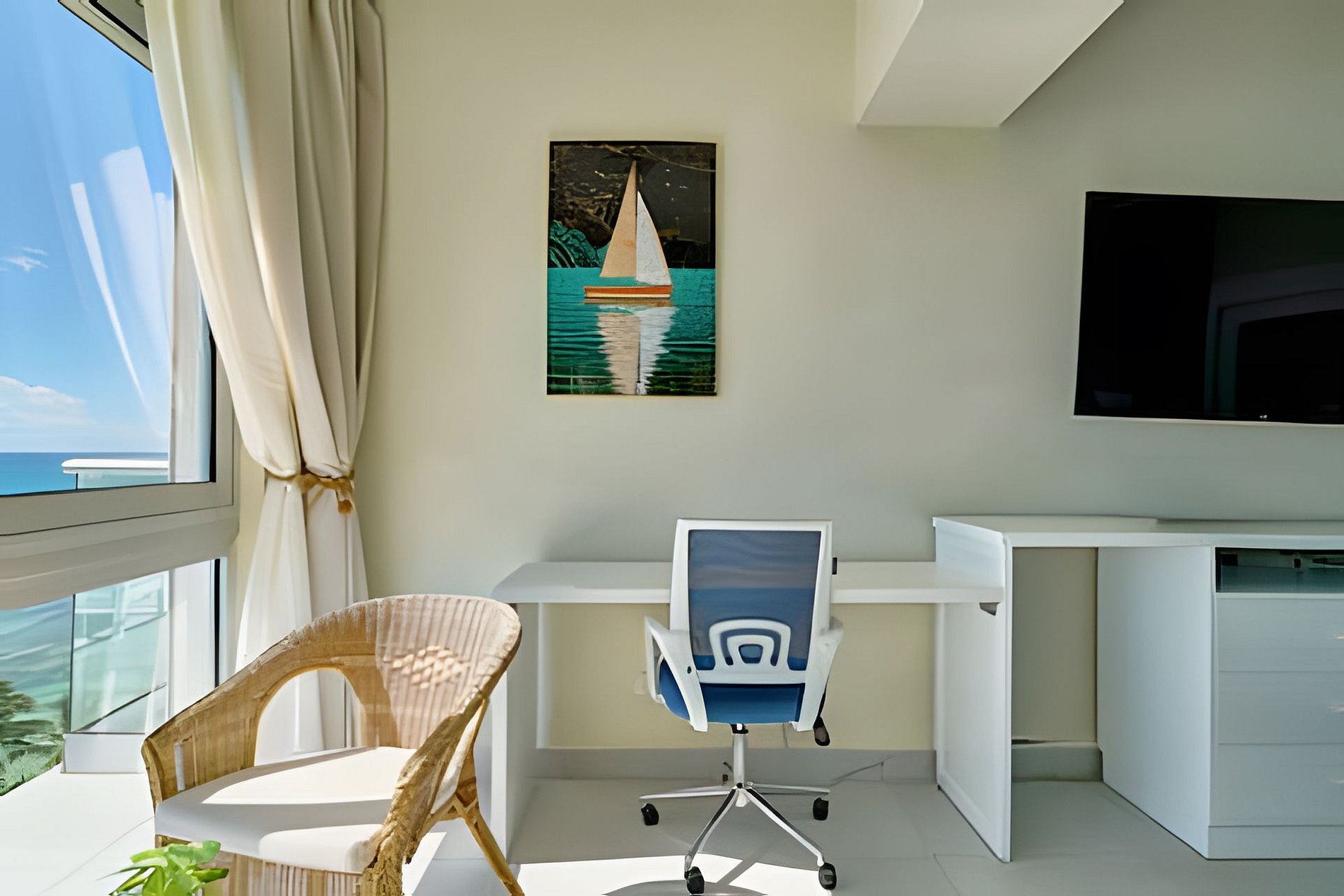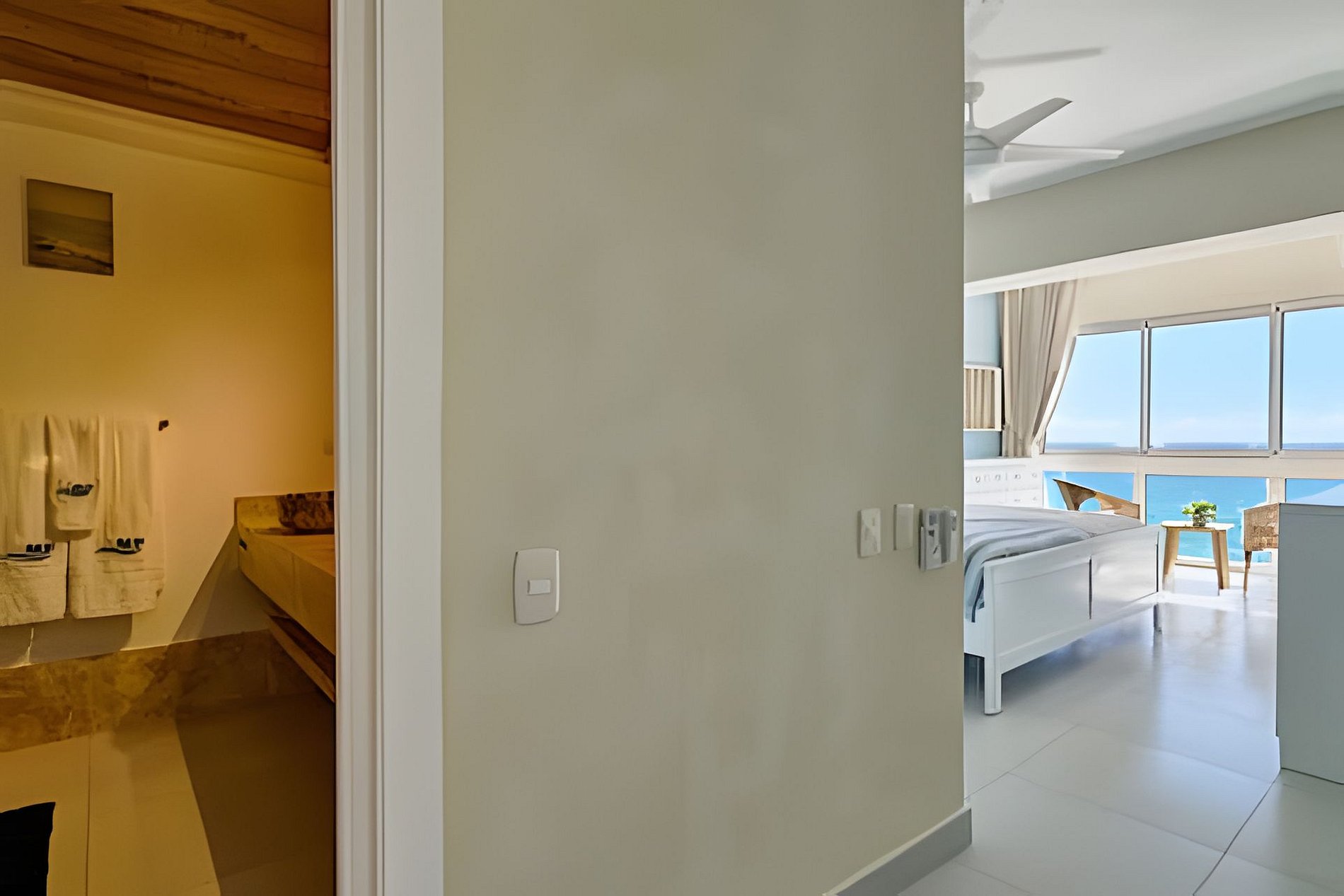Wake up every day with the sensation of floating on the Caribbean Sea. We have enabled for you this option of renting only the master suite with a private bathroom and access to all areas, just for your use, of this immense two-bedroom apartment so that you do not miss the opportunity to enjoy the incredible experience of spending a few days relaxing in front of the sea, with impressive views of the most spectacular sunrises and colorful sunsets in front of the beach.